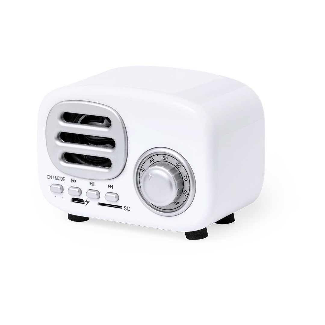 Compacto altavoz con estilo vintage en forma de radio de época y 3W de potencia. Con conexión Bluetooth para disfrutar de la libertad inalámbrica, reproduciendo la música y aportando estilo al mismo tiempo. Con indicadores luminosos, ranura para tarjetas Micro SD de hasta 64 GB y batería de 500 mAh. Presentado en atractiva caja de diseño kraft, con manual de instrucciones en español e inglés.