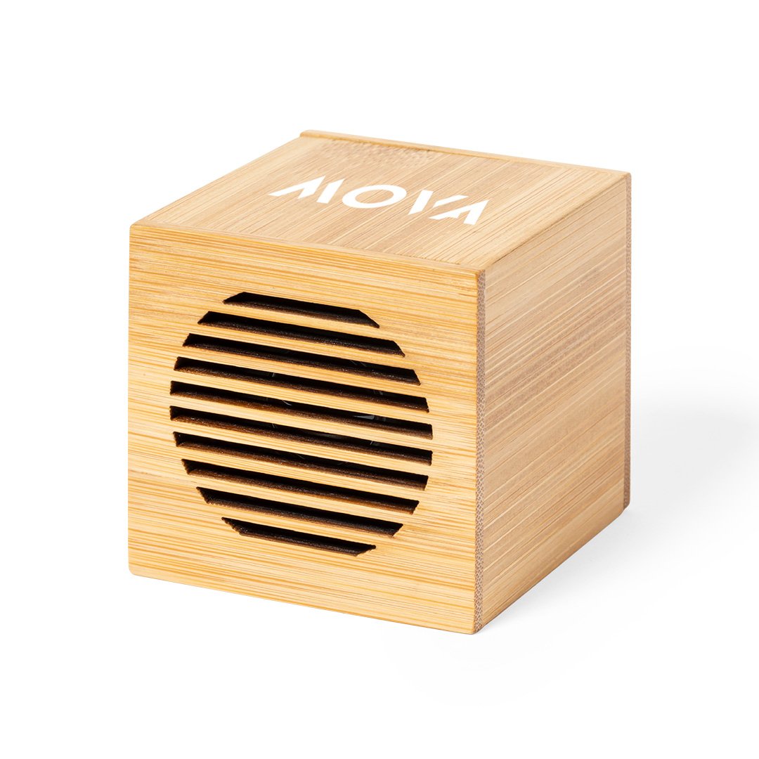 Altavoz inalámbrico de línea nature con conexión Bluetooth 5.0 y 3W de potencia, con batería de litio. Fabricado en bambú Recargable mediante cable Micro USB -incluido-. Amplia superficie de marcaje y presentado en atractiva caja de diseño eco. Disponible manual de instrucciones en español e inglés.