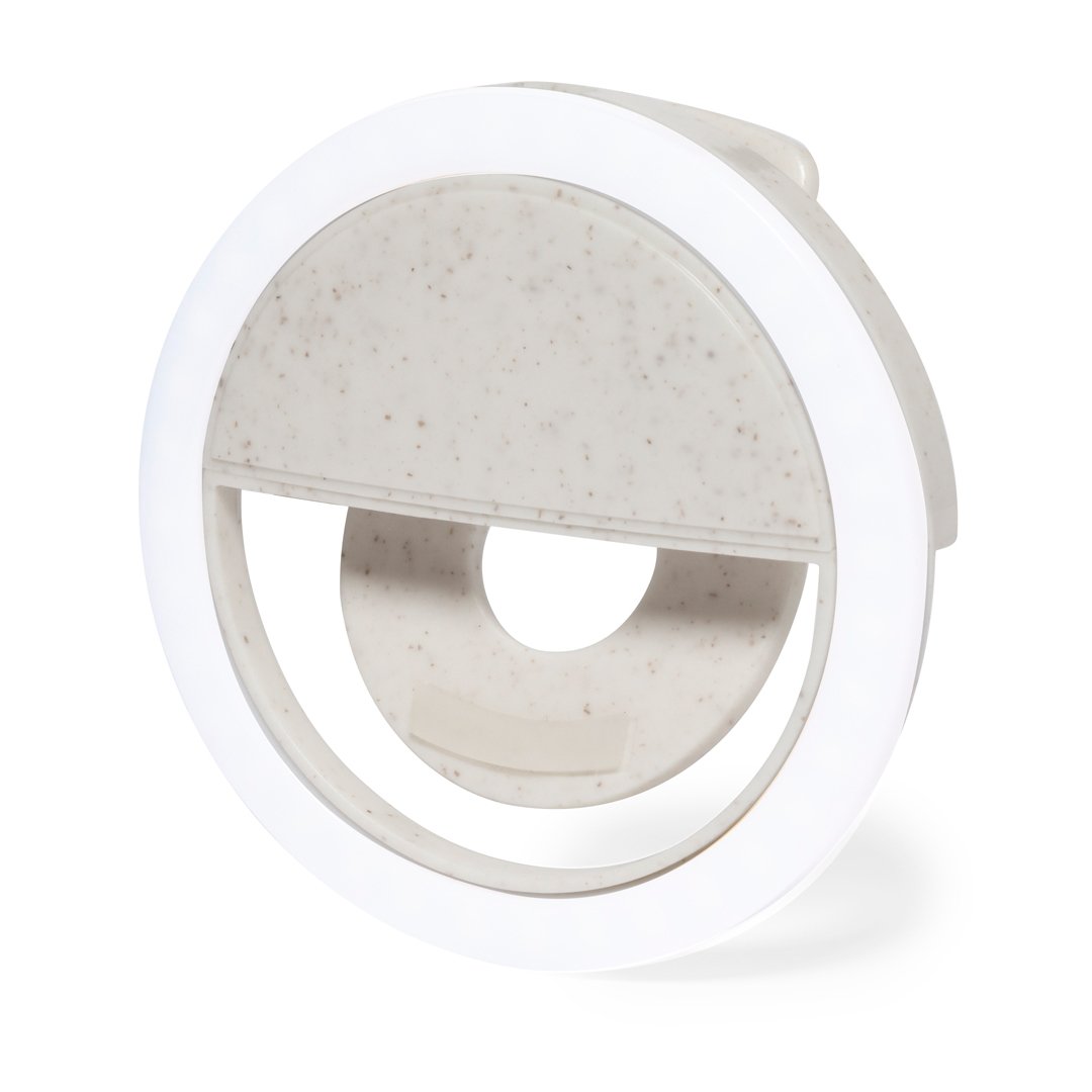Anillo de luz LED para smartphone, fabricado en resistente caña de trigo. Ajustable a cualquier smartphone, con 36 LEDs y 3 niveles de intensidad de luz. Batería de 80 mAh y recargable por USB (cable Micro USB incluido). Presentado en atractiva caja de diseño, con manual de instrucciones disponible en español e inglés.La caña de trigo fomenta la utilización de materias primas naturales, reduciendo así las emisiones contaminantes.
