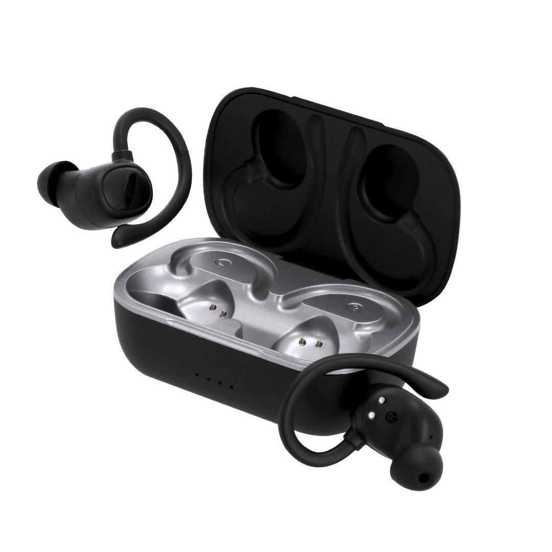 Auriculares intraurales con diseño ergonómico y sujeción firme que se adapta alrededor de la oreja, con conexión Bluetooth 5.4. Incluyen un estuche con tapa abatible y batería integrada de 200 mAh. Auriculares con control táctil integrado y función manos libres, ideales para llamadas y música. Recargables mediante cable Tipo C -incluido-.