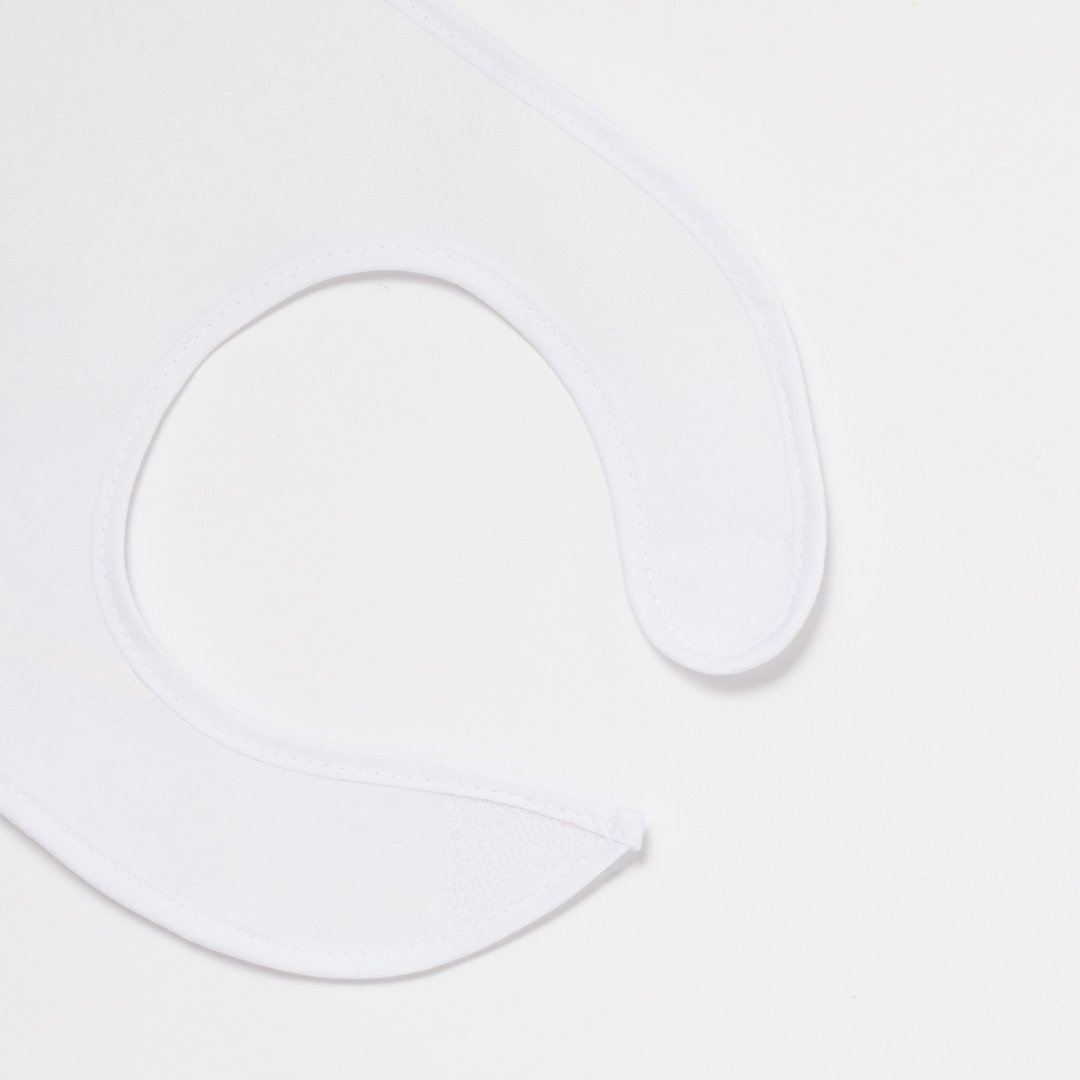 Práctico babero infantil confeccionado en algodón, con cierre de velcro para un mejor ajuste de color blanco.