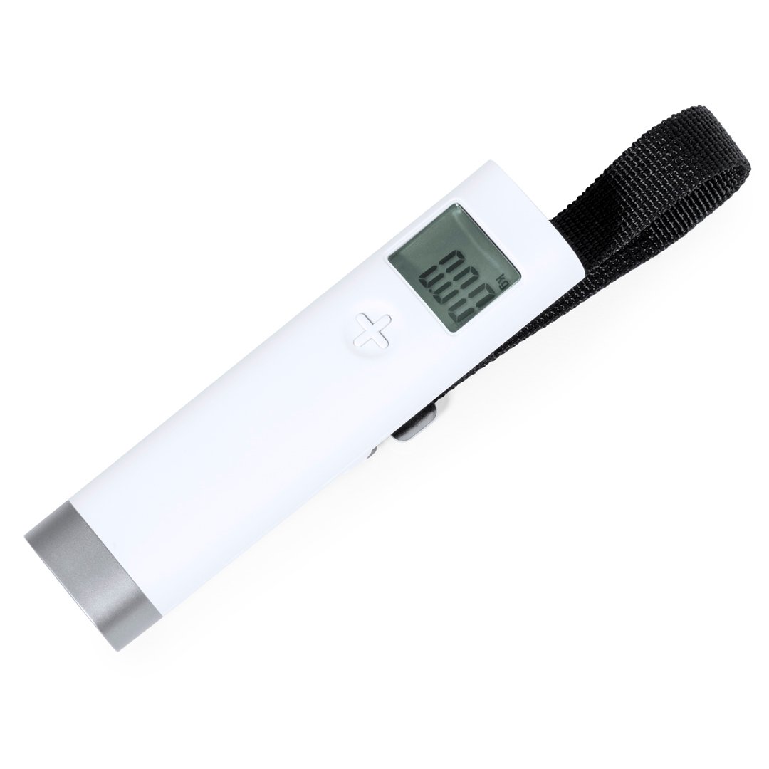 Ligera y práctica báscula digital para equipaje. Con pantalla digital y capacidad de hasta 50kg de peso. Fácil de transportar y de enganchar a maletas, mochilas o bolsas gracias a su práctico gancho. Disponible manual de instrucciones en español e inglés. Alimentación a pilas (1 pila de botón incluida).