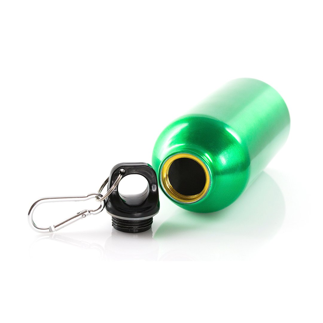 Bidón de 400ml de capacidad con cuerpo de acabado en aluminio en vivos y variados colores. Con tapón de seguridad a rosca y mosquetón metálico de transporte. Presentado en atractiva caja de diseño.