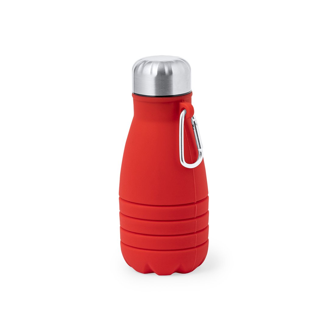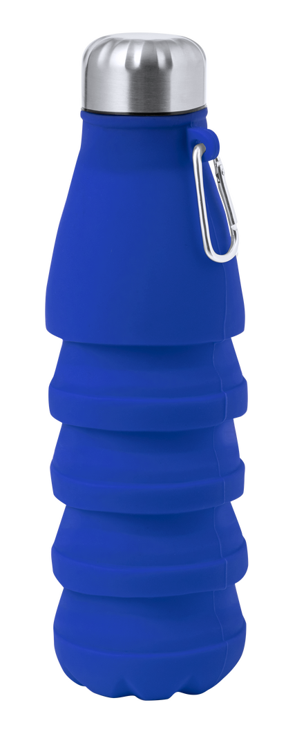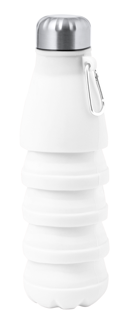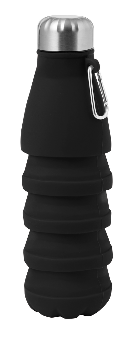 Bidón plegable de 550 ml de capacidad. Fabricado en silicona de alta calidad con tapón de acero inoxidable. Con cuerpo flexible de acabado mate, este bidón puede ser plegado para un cómodo y sencillo almacenamiento. Incluye mosquetón para fácil transporte. Libre de BPA. Es ideal para tener en tu escritorio, mesa o en cualquier superficie donde disfrutar tranquilamente de tu bebida favorita. Medidas plegado: Ø7,1 cm x 16,9 cm de alto. Medidas desplegado Ø7,1 cm hasta 24,8 cm de alto.