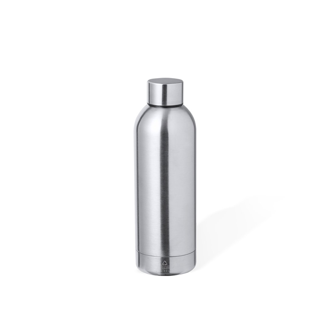 Bidón térmico de doble capa en Acero Inox Reciclado de 500 ml de capacidad. Cierre de rosca para un sellado óptimo y con logotipo Acero Inox Reciclado. Presentado en atractiva caja de diseño kraft.El acero es uno de los materiales más demandados y que puede encontrarse casi en todas partes, desde productos de uso diario a grandes construcciones. Con innumerables propiedades, entre las que cabe destacar la durabilidad y su alto grado de reutilización, convirtiéndolo en una alternativa muy valorada en soluciones de sostenibilidad. Debidamente tratado, permite obtener nuevos recursos de infinita utilización.