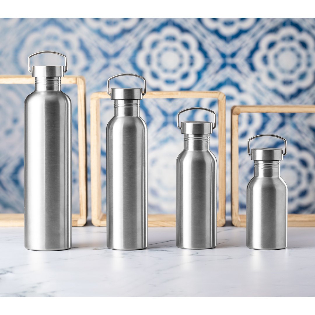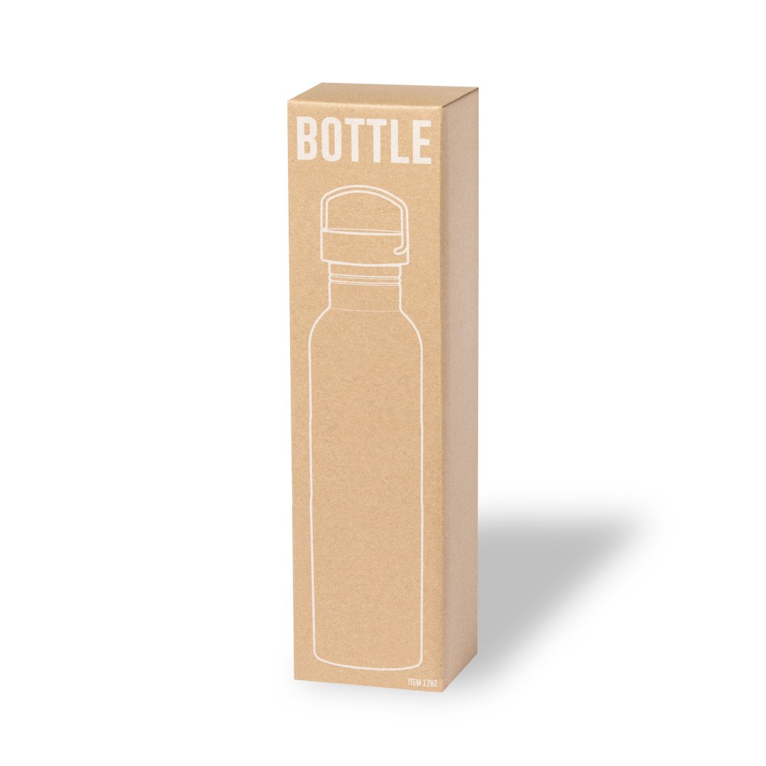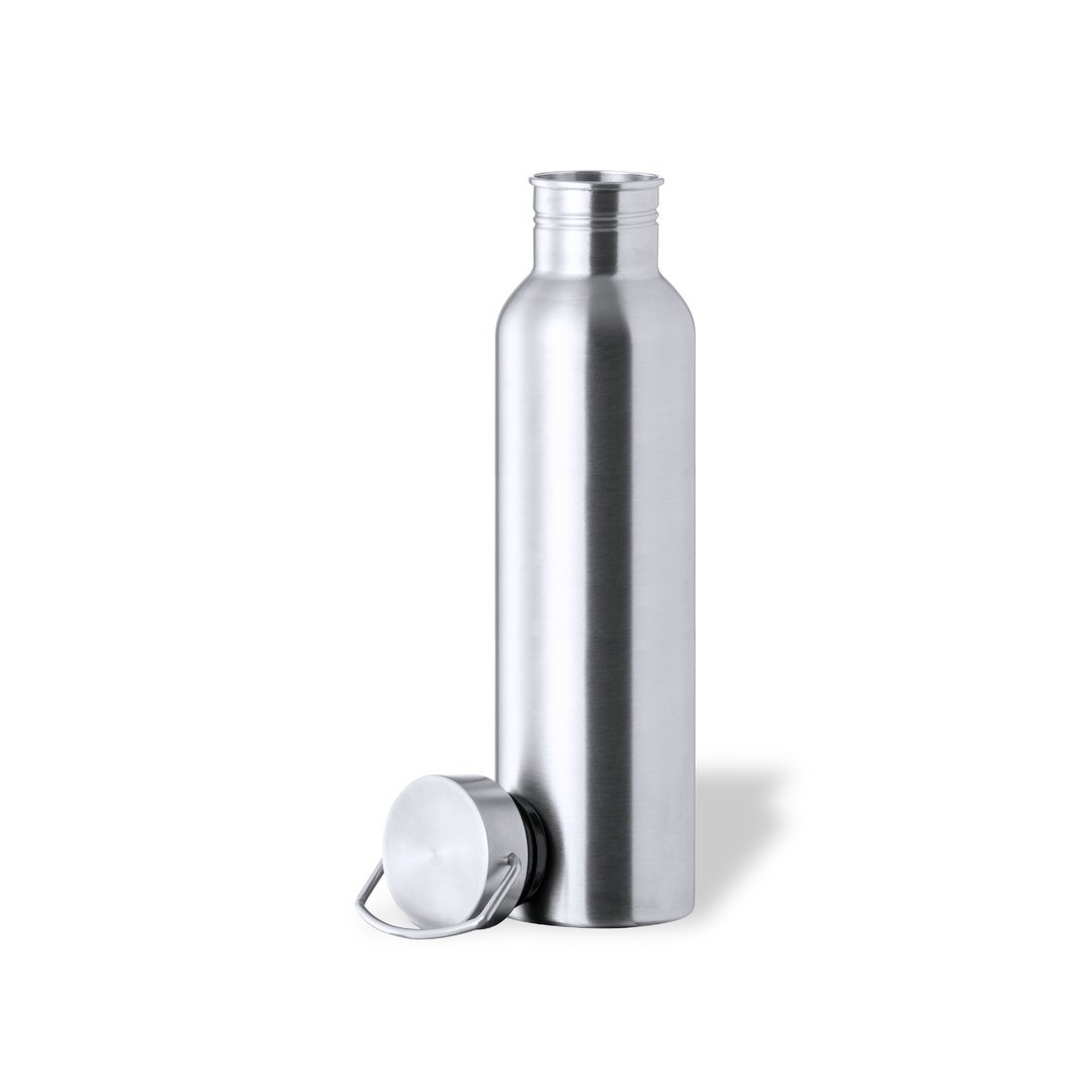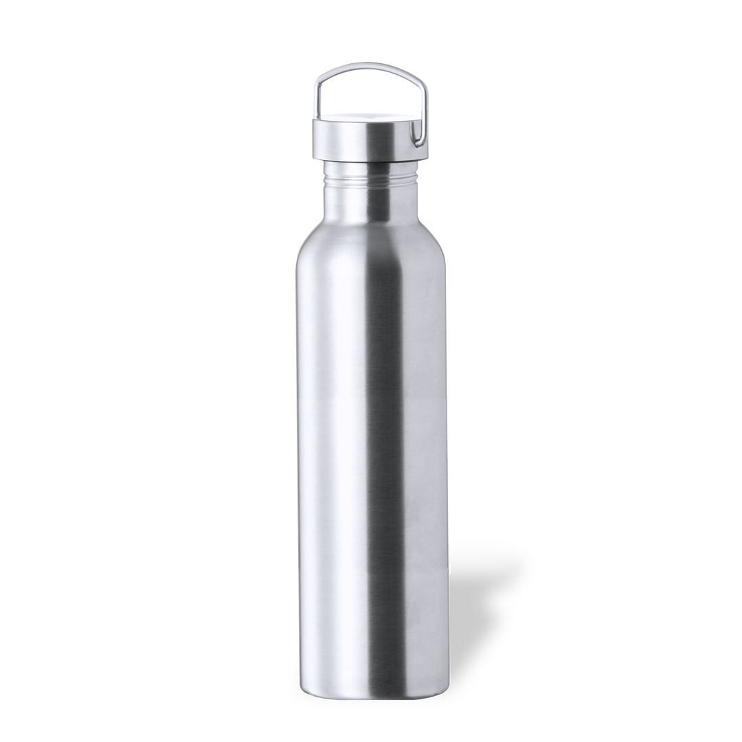 Bidón de 1 l de capacidad, fabricado en acero inox de acabado brillo. Con original tapón a rosca en acero inox, a juego y con asa integrada. Libre de BPA y presentado en caja individual de diseño kraft.Disponible manual de instrucciones en español e inglés.