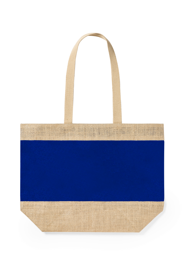 Bolsa en resistente combinación de yute laminado y algodón laminado, con asas de algodón natural. De acabado cosido, con asas largas reforzadas y disponible en amplia gama de colores. Resistencia hasta 10kg de peso.