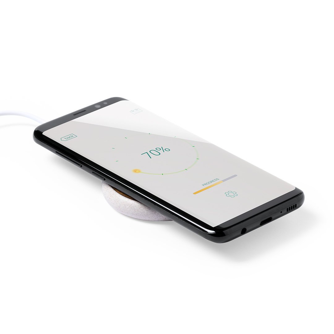 Cargador inalámbrico de diseño circular con superficie de carga en bambú y carcasa en caña de trigo, para así fomentar la utilización de materias primas naturales y reducir las emisiones contaminantes. Indicador led, con cable de carga micro USB incluido y compatible con dispositivos equipados con tecnología de carga inalámbrica. Protección de seguridad para evitar sobrecalentamiento, sobrecarga y cortocircuito. Presentado en atractiva caja de diseño nature.