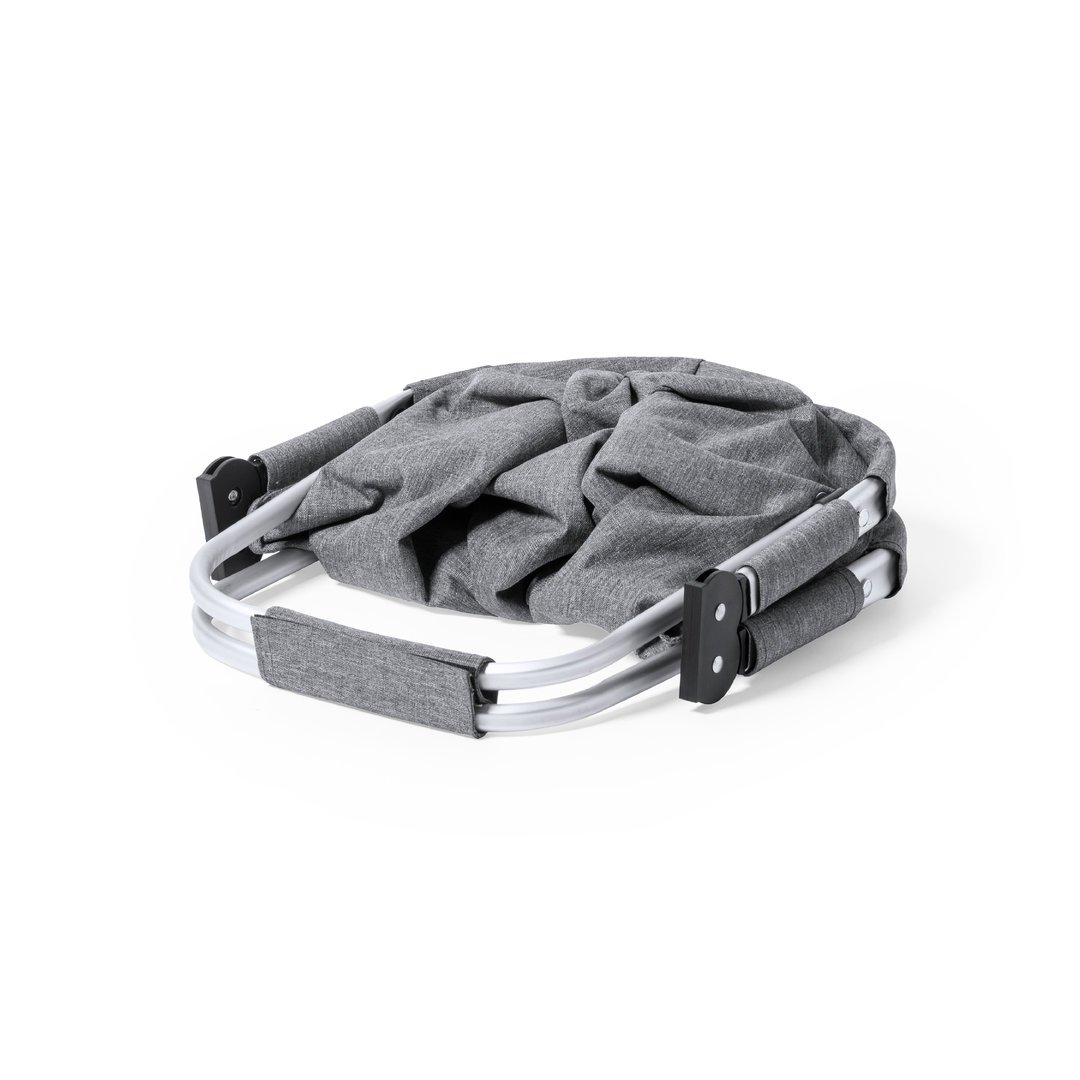 Cesta plegable fabricada en resistente 600D RPET. Con resistente estructura de aluminio y 2 asas de transporte plegables en aluminio, con cinta de velcro a juego. Bolsillo exterior con cierre de cremallera y etiqueta exterior con distintivo RPET. El material RPET se elabora a partir de plástico reciclado, para así fomentar la reutilización de residuos plásticos y ayudar a la sostenibilidad del planeta.