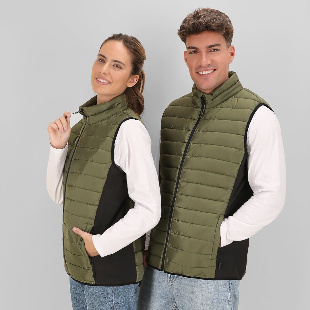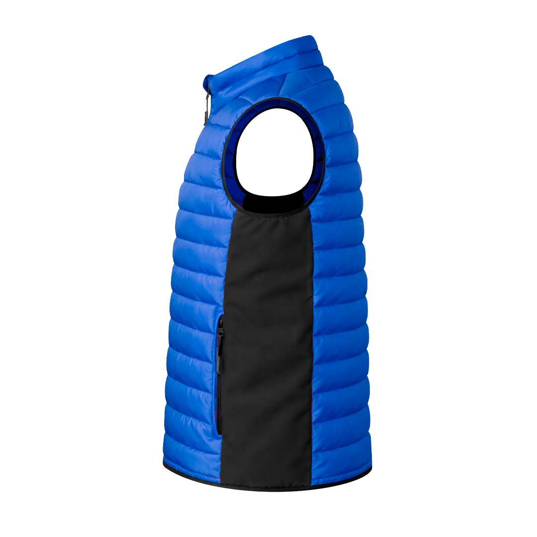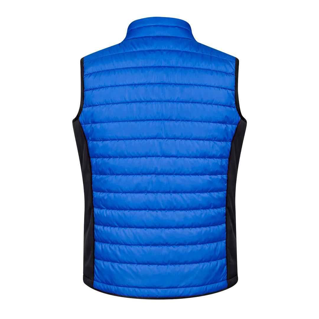 Chaleco resistente al viento y al agua, en cálida combinación de materiales soft shell y poliéster, con interior acolchado. De elegante construcción y en variada gama de colores, con detalles y laterales en negro. Cierre de cremallera y bolsillos laterales de cremallera, con tiradores para fácil apertura. Disponible en tallas S, M, L, XL, XXL.