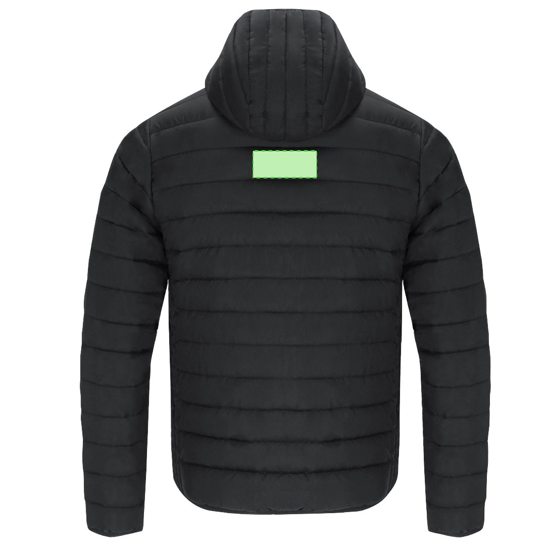 Chaqueta Unisex de RPET con capucha. En material extra ligero con acolchado efecto pluma y suave forro interior, resistente al agua y cortavientos. Puños, cintura y capucha con ribetes elásticos a tono. Apertura con cremallera invertida y tirador a juego, con protector de barbilla. Cuenta con 2 bolsillos exteriores laterales con cremalleras y tiradores a juego, y 2 bolsillos interiores. Etiqueta con distintivo RPET en el ribete de la prenda y práctica funda de transporte con cordón ajustable.