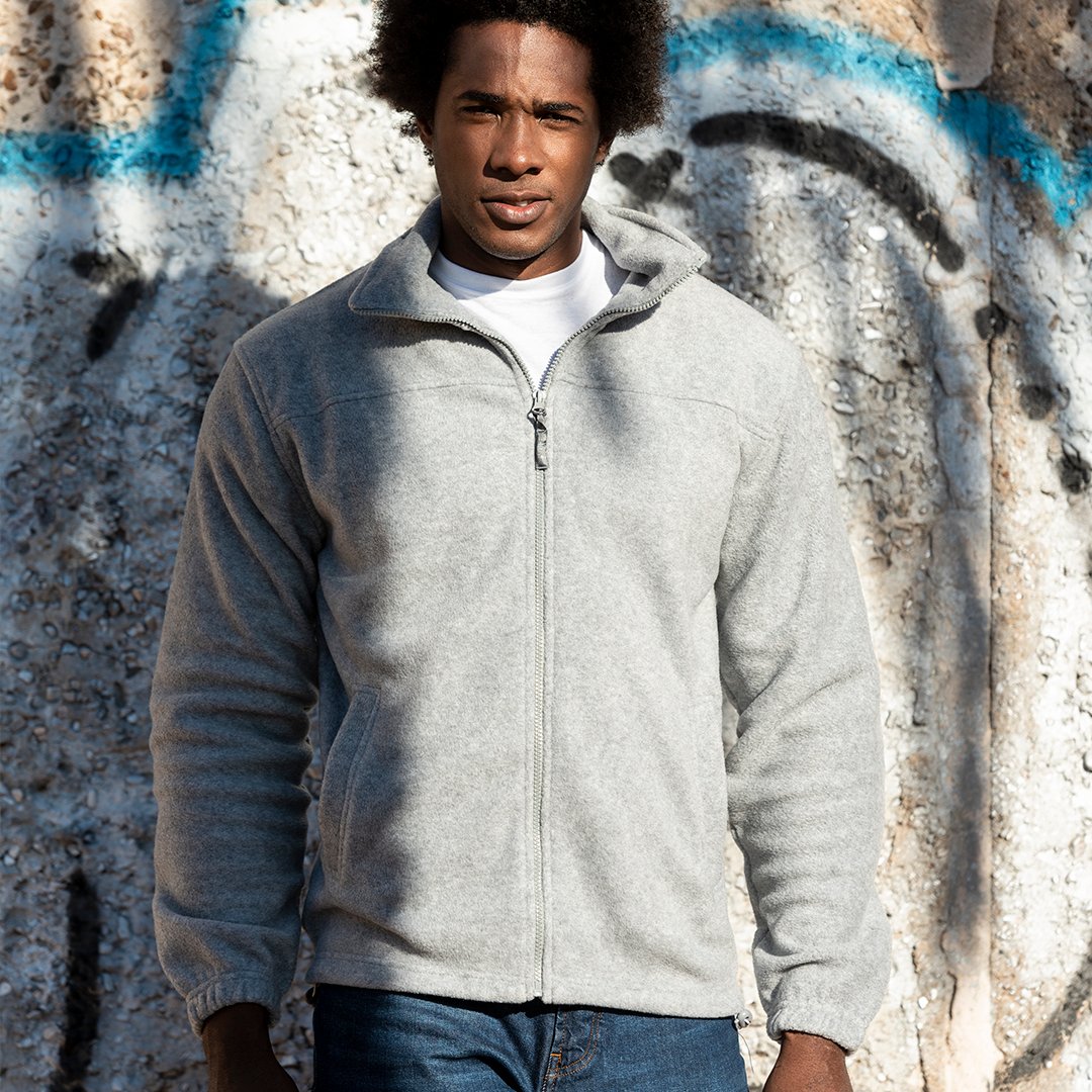 Chaqueta en cálido y suave polar fleece de 280g/m2 con tratamiento anti-pilling. Con cuello de tamaño maxi, cierre de cremallera con cinta en tirador y bolsillos laterales. Disponible en tallas S, M, L, XL, XXL.