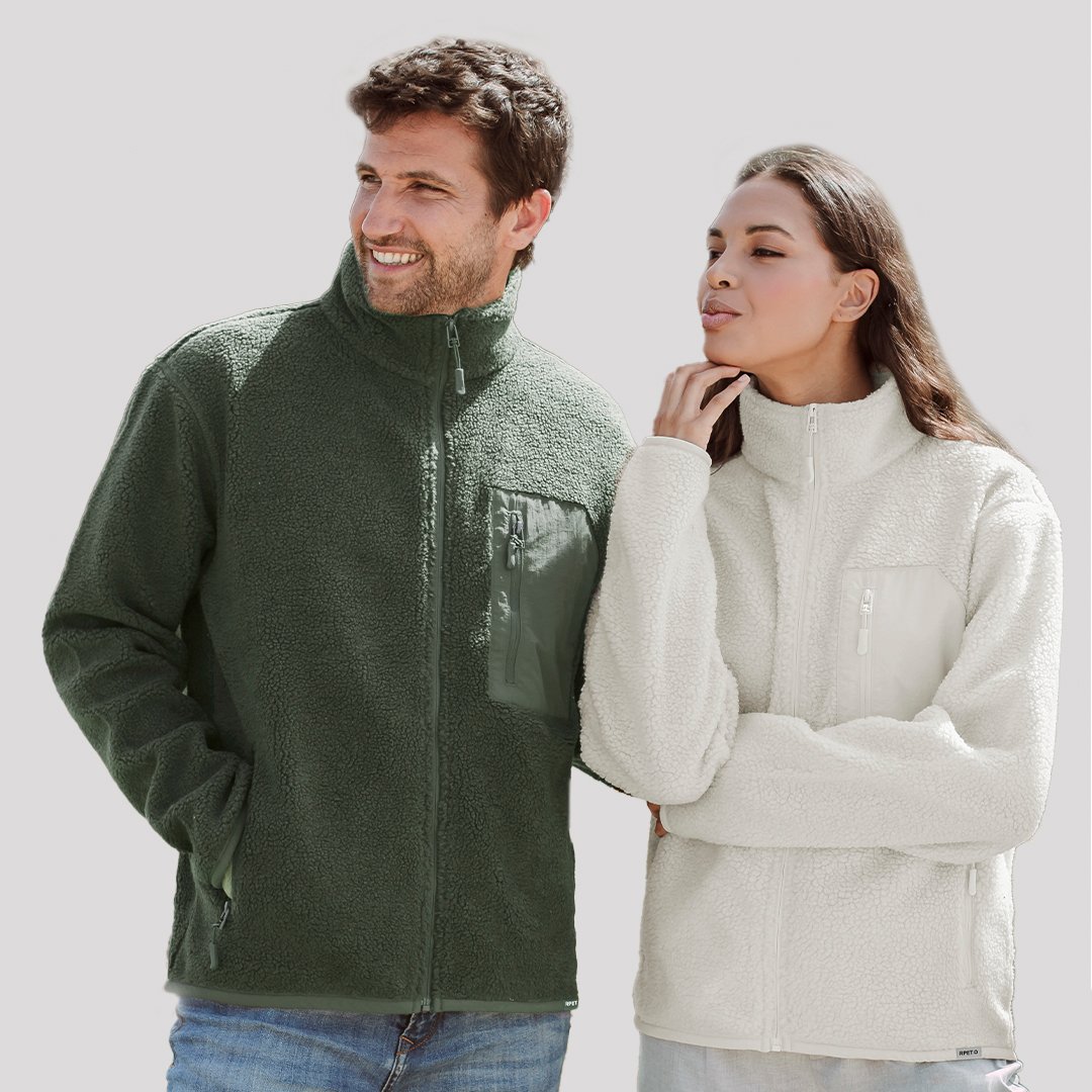 Chaqueta en cálido material sherpa RPET de 450g/m2, con interior de forro polar en color a juego. De suave tacto y estilo borrego. Bolsillo en pecho de poliéster RPET con cierre de cremallera y tirador a juego. Con cremallera central invertida en nailon y bolsillos laterales con tiradores de color a juego, que agregan un estilo único. Incluye distintivo eco en dobladillo inferior de la prenda.Disponible varios colores y en tallas XS, S, M, L, XL, XXL.