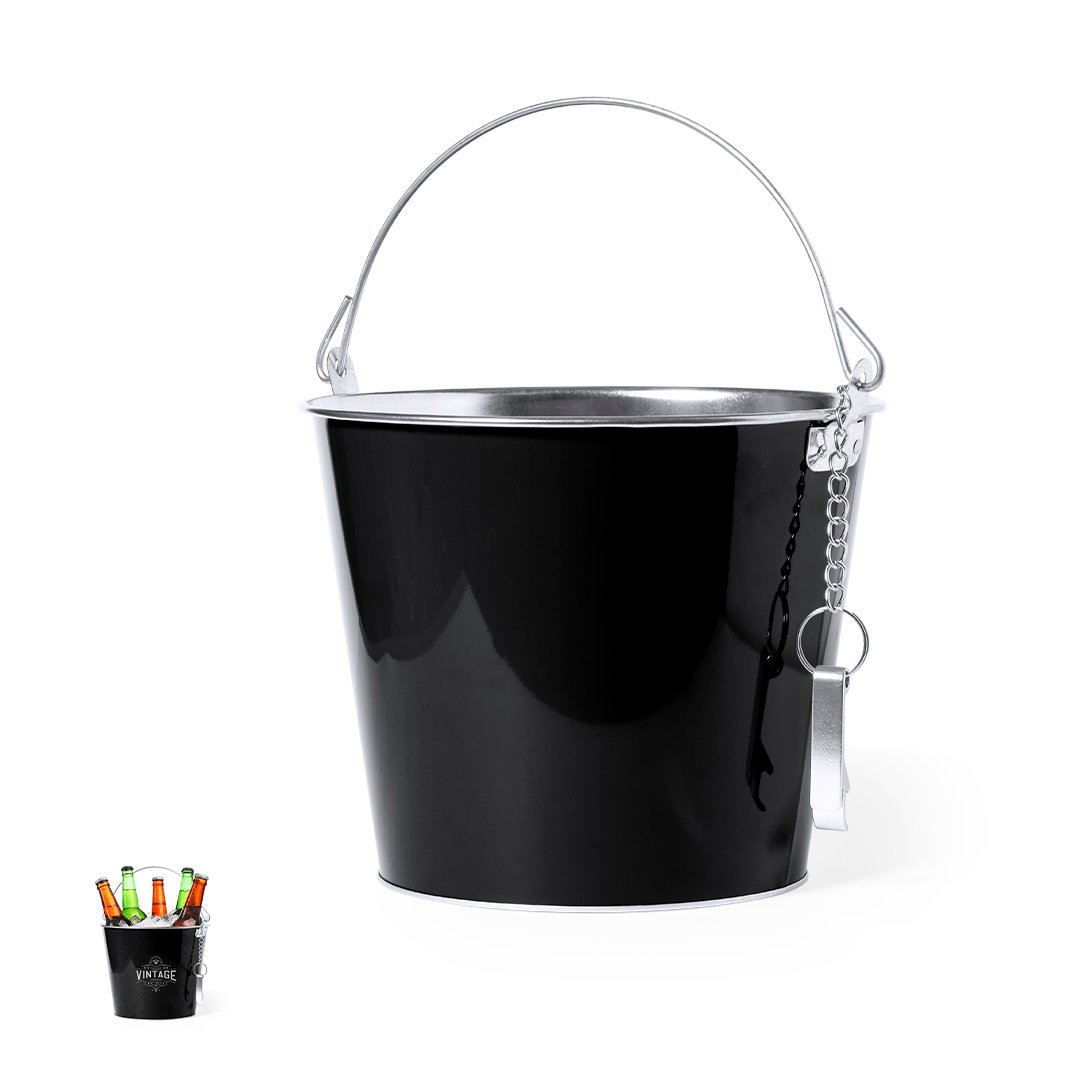 Cubo metálico de 6l de capacidad, con interior galvanizado y exterior disponible en variada gama de colores. Con asa, incluido abridor de aluminio y cadena en color plata.