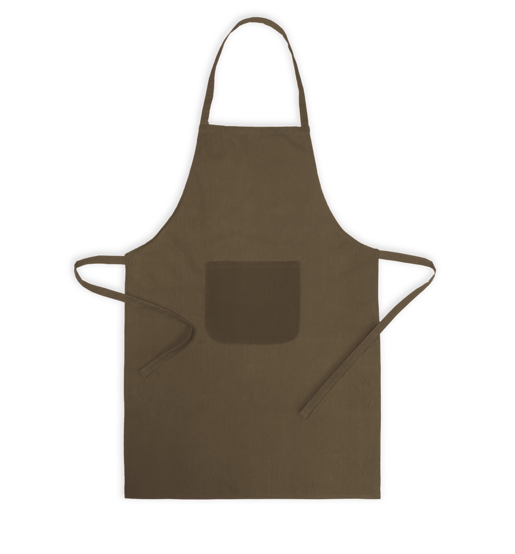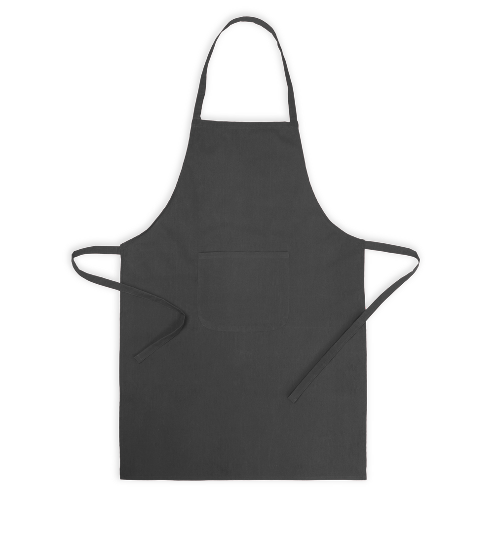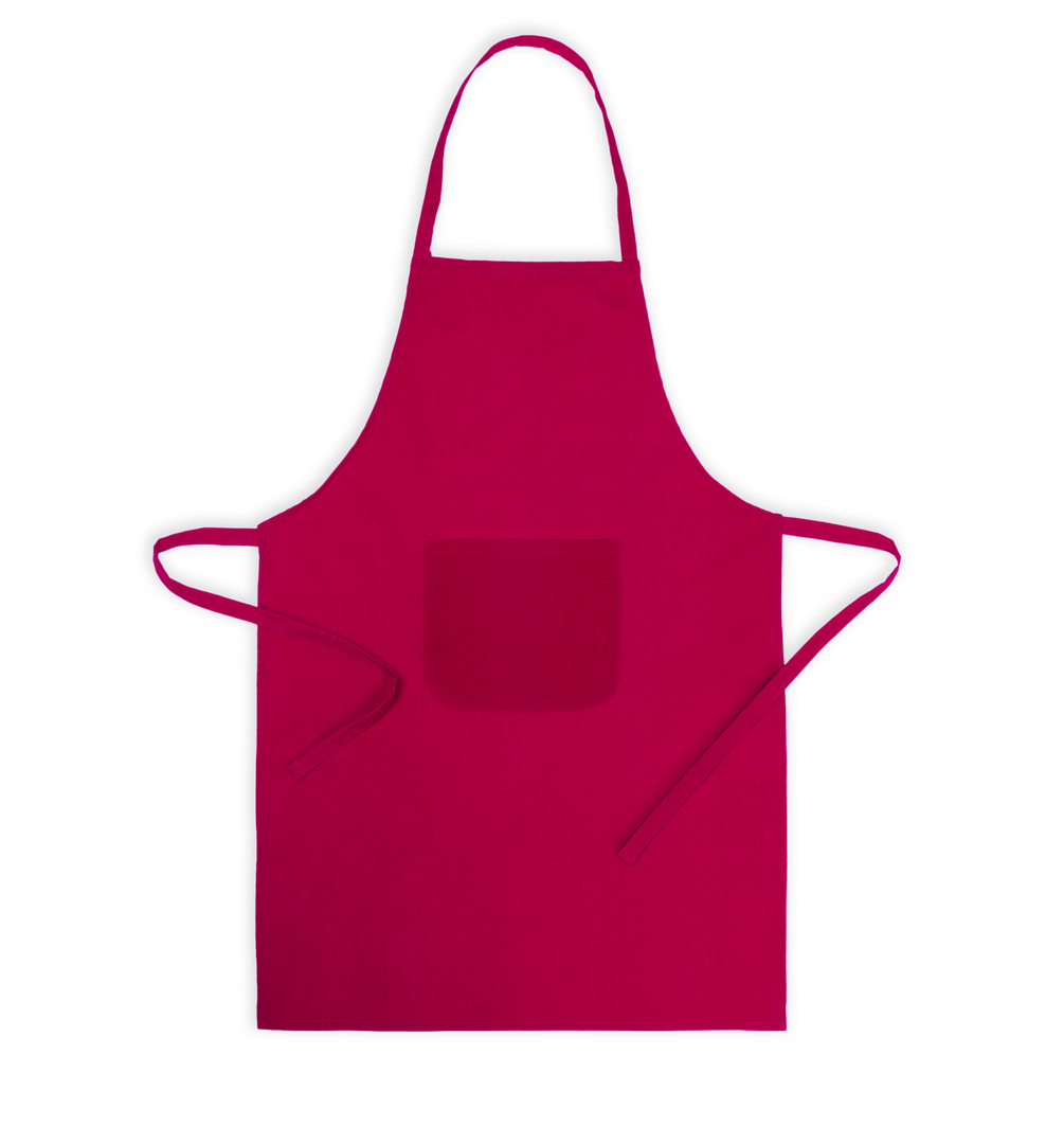 Delantal fabricado en tejido TC, combinación de algodón y poliéster. En el frontal incluye un práctico bolsillo, con cordones ajustables en la cintura y corte por debajo de la rodilla. Disponible en amplia gama de colores.