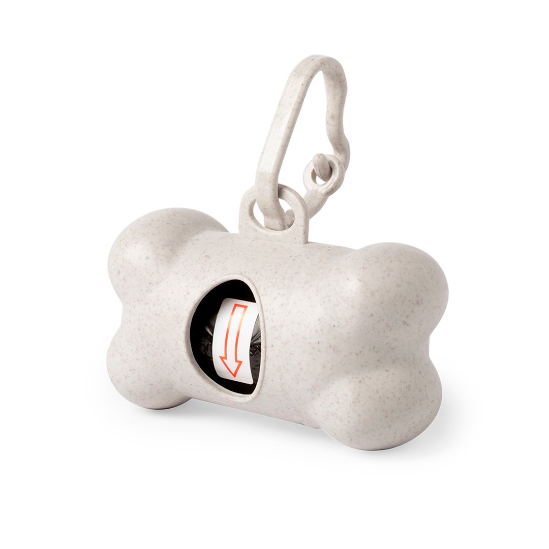 Dispensador de bolsas para mascotas en línea nature, fabricado en fibra de bambú. Con resistente cuerpo y diseño de hueso, mosquetón de transporte a juego y 15 bolsas biodegradables incluidas.