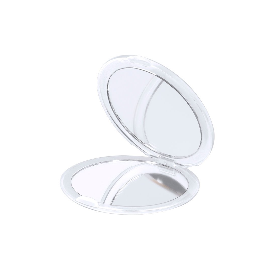Espejo plegable en variada gama de vivos colores translúcidos con dos espejos interiores de aumentos 1x/2x.