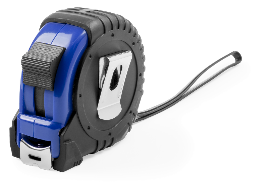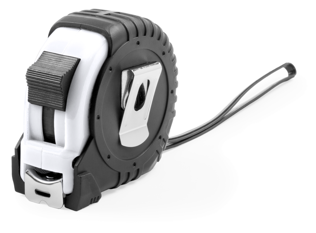 Flexómetro de 7,5 metros con cuchilla metálica y mecanismo de bloqueo. Con cuerpo de suave acabado en variados colores, recubierto con funda protectora en resistente goma, clip metálico para cinturón y cinta de transporte. Con troquelado especial para marcaje en doming/gota de resina y presentado en caja individual.