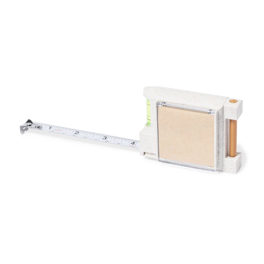 Flexómetro 3 m multifunción de línea nature, con carcasa fabrcada en caña de trigo. Con nivel integrado, soporte para bolígrafo (bolígrafo incluido) y bloc con 12 notas adhesivas en color natural. Con freno, clip metálico para cinturón y hoja con medidas en centímetros y pulgadas. Presentación en caja individual de diseño kraft.La caña de trigo fomenta la utilización de materias primas naturales, reduciendo así las emisiones contaminantes.