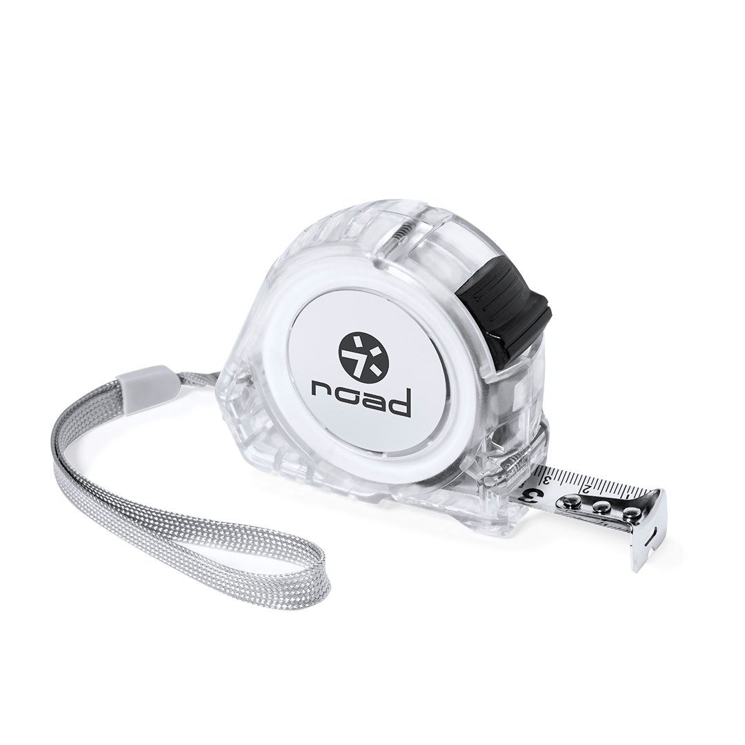 Flexómetro de 5 metros con cuchilla metálica y mecanismo de bloqueo. Con cuerpo en original acabado transparente, clip metálico para cinturón y cinta de transporte, con zona especial de marcaje. Presentado individualmente en caja de diseño kraft.
