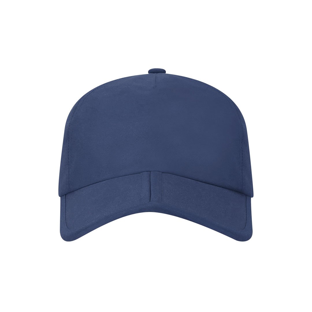 Gorra plegable de 5 paneles en suave material microfibra. De cierre ajustable de velcro.