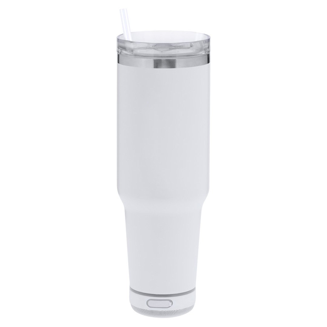 Taza térmica con Altavoz Bluetooth 5.3 de 3W integrado. Con 1,25L de capacidad, asa ergonómica y fabricado en acero inoxidable de doble pared, asegurando una durabilidad máxima y un excelente mantenimiento de la temperatura de las bebidas, ya sean frías o calientes. Es ideal para tener en tu escritorio, mesa o en cualquier superficie donde disfrutar tranquilamente de tu bebida favorita. La tapadera cuenta con un cierre a presión y un dosificador de fácil apertura, libre de BPA, garantizando seguridad y facilidad de uso. Cuenta con base antideslizante, a juego, que proporciona una mayor estabilidad. El altavoz Bluetooth integrado en la base de la taza es fácilmente extraíble gracias a su sistema de rosca, e incluye iluminación inteligente LED RGB, que se sincroniza al ritmo de la música, creando una experiencia visual y auditiva única. Además, la función manos libres permite atender llamadas sin necesidad de dejar lo que se está haciendo.