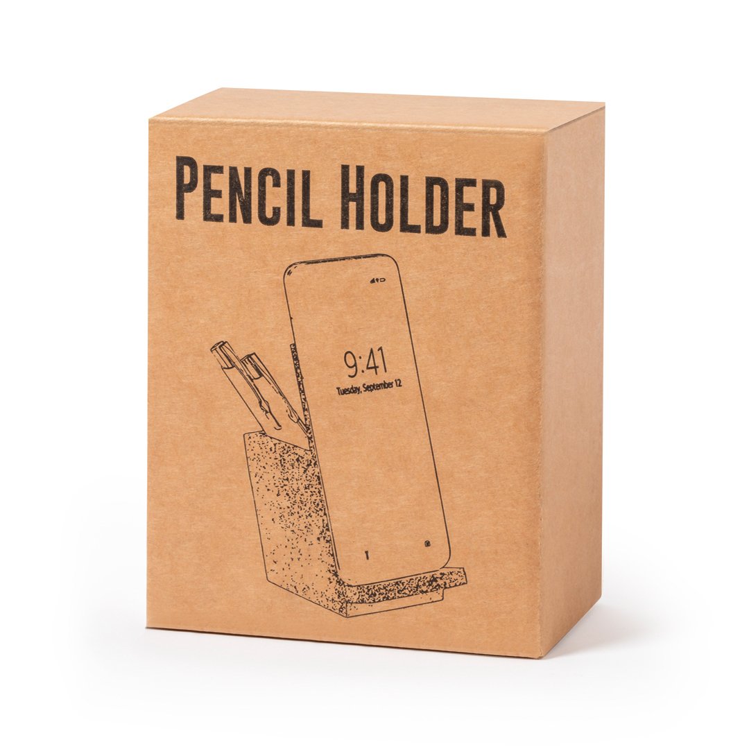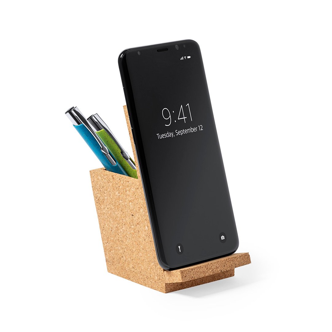 Lapicero de línea nature con soporte para smartphone integrado. Fabricado en corcho, para así fomentar el uso de las materias primas naturales, y presentado en atractiva caja de diseño eco.
