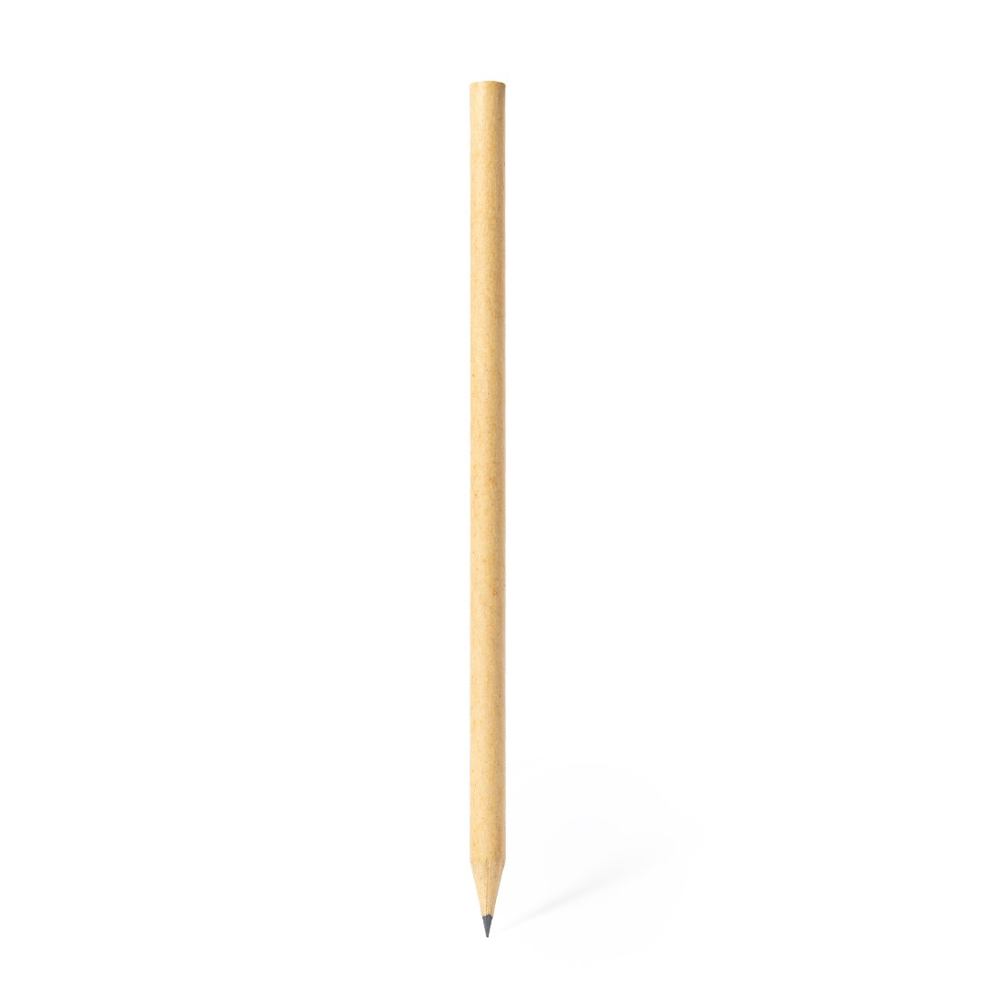 Lápiz de línea nature fabricado en resistente papel reciclado de color kraft. Con mina negra y punta afilada.
