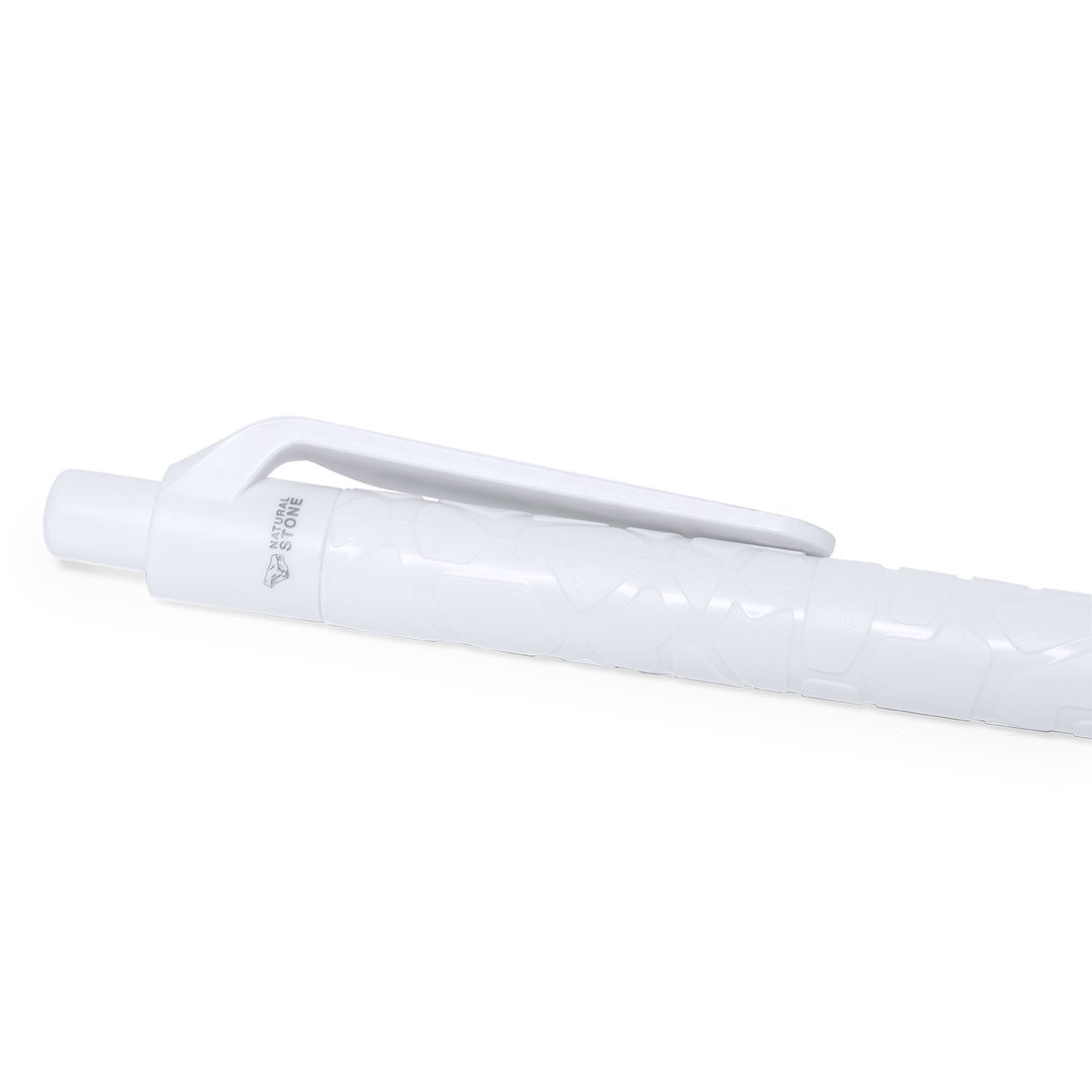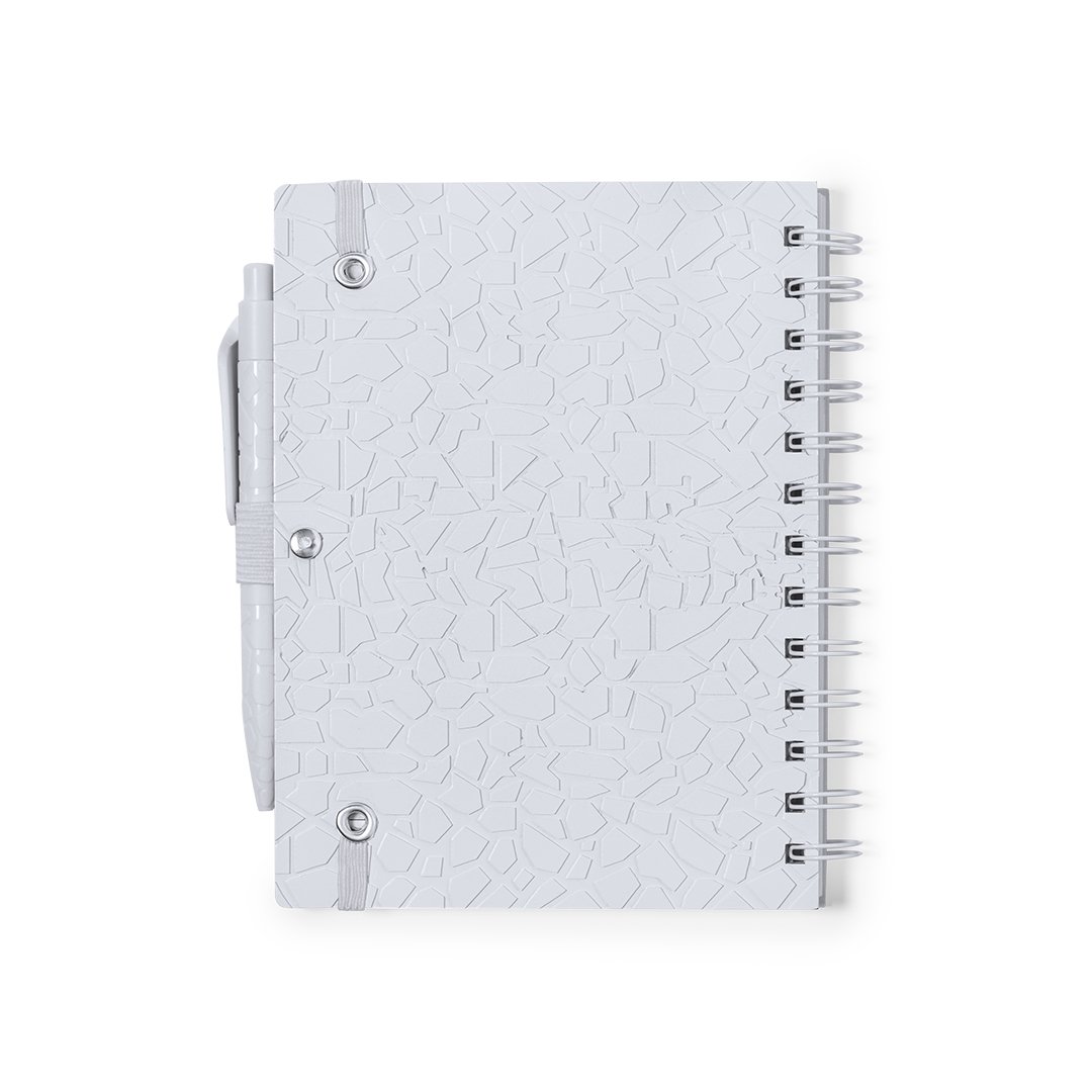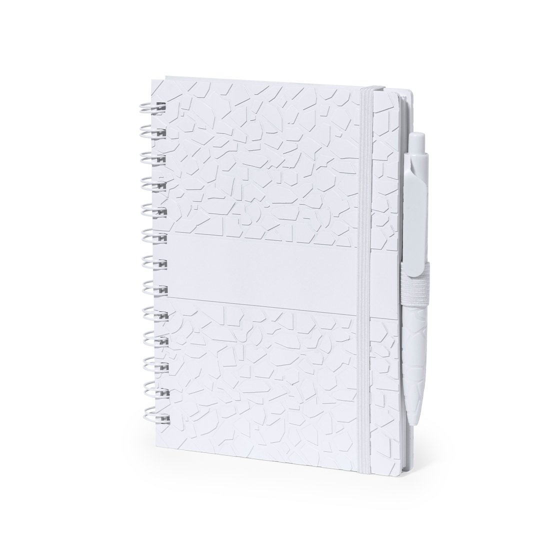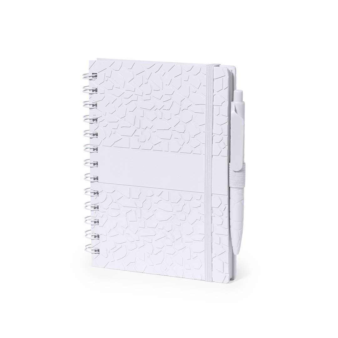 Set de libreta y bolígrafo. Contenido: Libreta de anillas con tapas rígidas fabricada a base de extractos de piedra en elegante acabado de color blanco y soporte para el bolígrafo. Portada de diseño único con relieve troquelado. De 70 hojas color blanco y disposición a una raya, con distintivo Natural Stone.Bolígrafo de línea nature y mecanismo pulsador. Cuerpo troquelado fabricado con extractos de piedra natural, ayudando a la reducción del uso de plásticos, además de proporcionar un acabado suave y resistente. En color blanco y con distintivo Natural Stone en la parte superior. De cartucho jumbo y en tinta azul.El material usado en la elaboración de la libreta es 100% reciclable y libre de cloro, con propiedades impermeables, altamente resistente y lavable, convirtiéndose así en una alternativa ecológica y sostenible frente al papel convencional, cuyo origen no es el tradicional ni proviene de los árboles.Presentado en bolsa individual reciclada