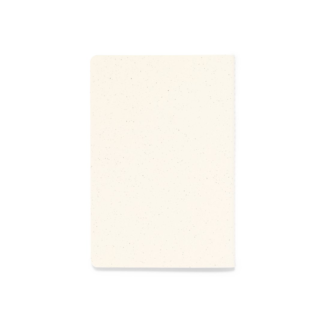 Libreta con tapas fabricadas en cartón reciclado y acabado cosido a juego en el lomo. Interior con 60 hojas blancas lisas. Presentado en bolsa individual reciclada.