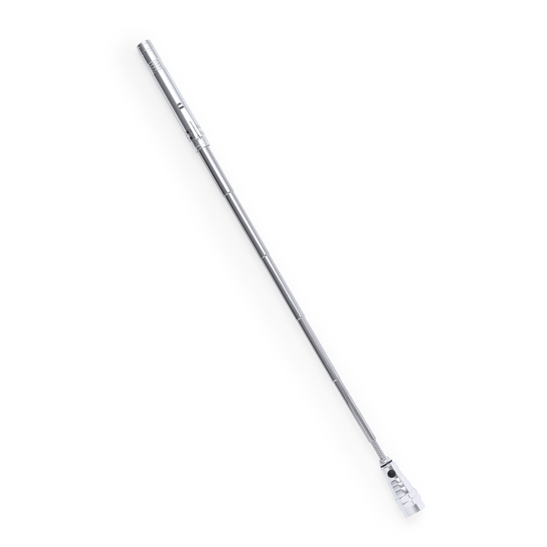Linterna de aluminio práctica y versátil, con cabezal extensible (triplicando su longitud) y flexible para llegar a todos los lugares, además está equipado con imanes adaptándose a diversas necesidades. Cuenta con 3 potentes LEDs para una iluminación eficiente. Funciona con pilas de botón incluidas y presenta un clip metálico para facilitar su sujeción. Se presenta de manera individual en una caja de diseño kraft.