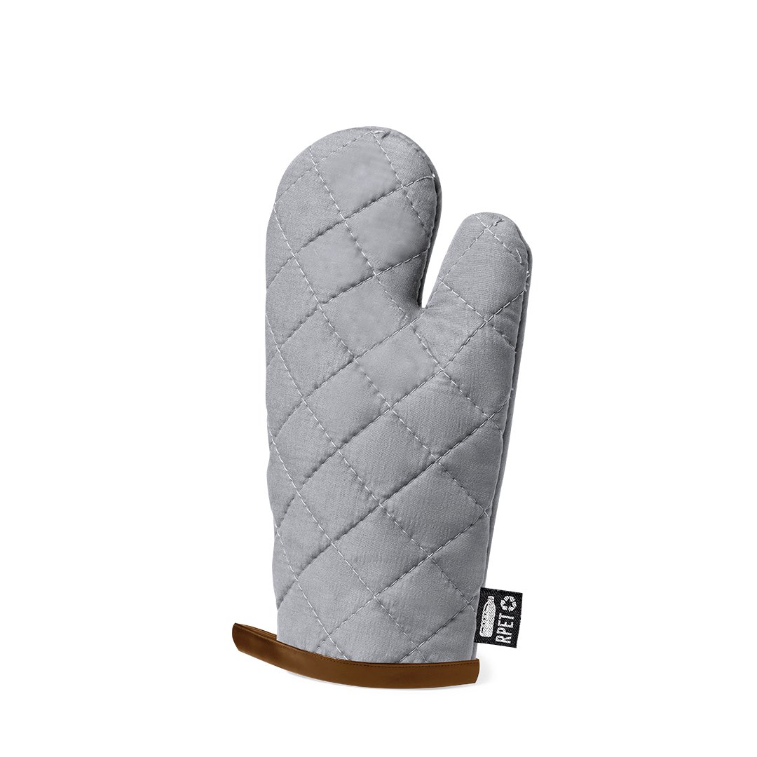 Manopla de cocina de línea nature. Fabricada en poliéster RPET, elaborado a partir de plástico reciclado, para así fomentar la reutilización de residuos plásticos y ayudar a la sostenibilidad del planeta. Con una cara lisa para impresión y cinta para colgar en contraste. Etiqueta exterior con distintivo RPET.