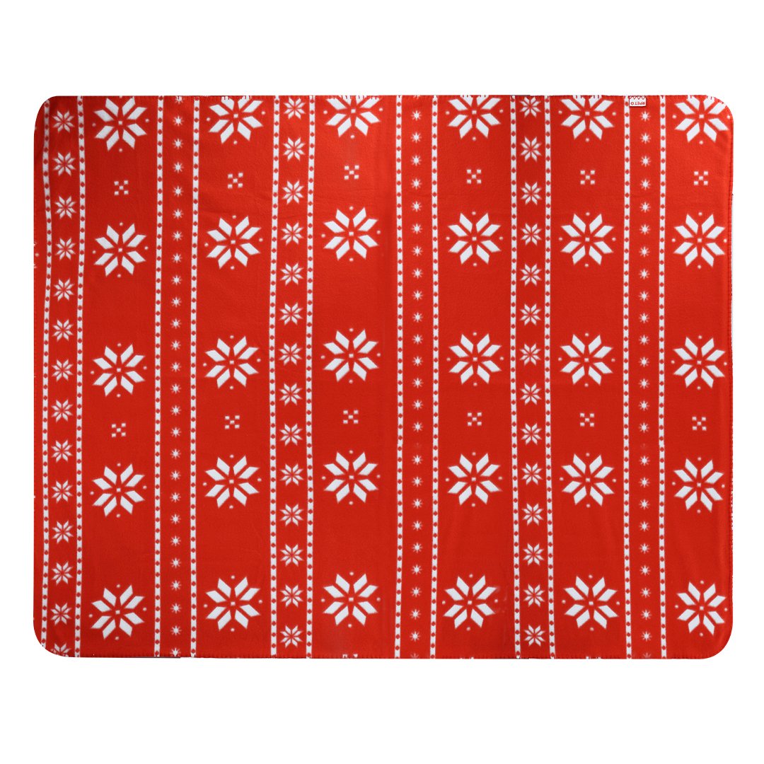 Manta de 130×160 cm fabricada en suave poliéster RPET. Original diseño de navidad de color rojo con motivos navideños en blanco. En suave y cálido material polar fleece de 200g/m2 con tratamiento anti-pilling. Distintivo RPET en etiqueta. Presentada en cartón de color blanco, con lazo a juego. El material RPET se elabora a partir de plástico reciclado, para así fomentar la reutilización de residuos plásticos y ayudar a la sostenibilidad del planeta.