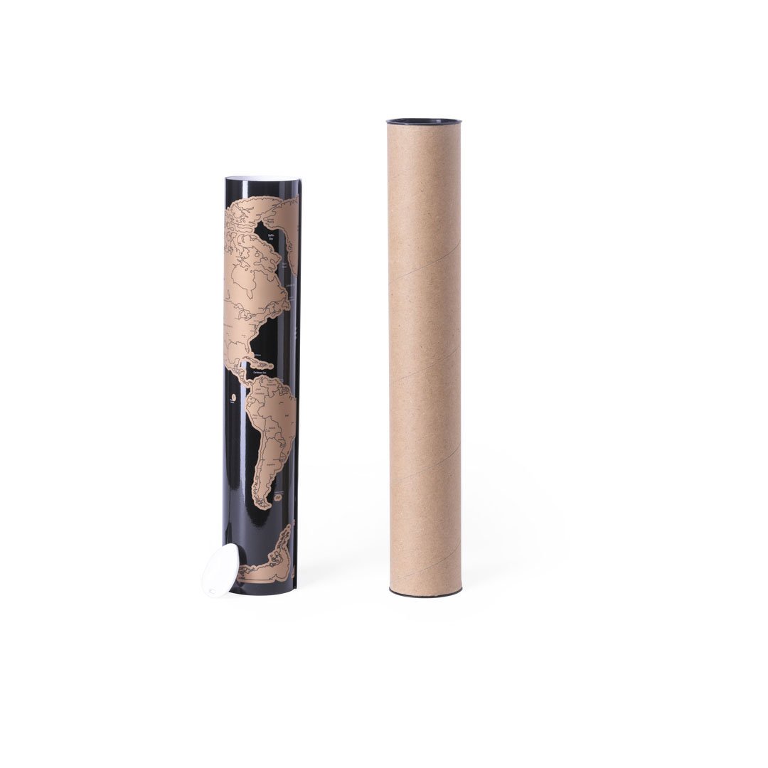 Mapamundi de línea nature para los más viajeros. Fabricado en papel laminado, basta con rascar la superficie del país que se desee para que aparezca como marcado. Incluye rascador y viene presentado en un atractivo estuche de cartón de diseño eco.