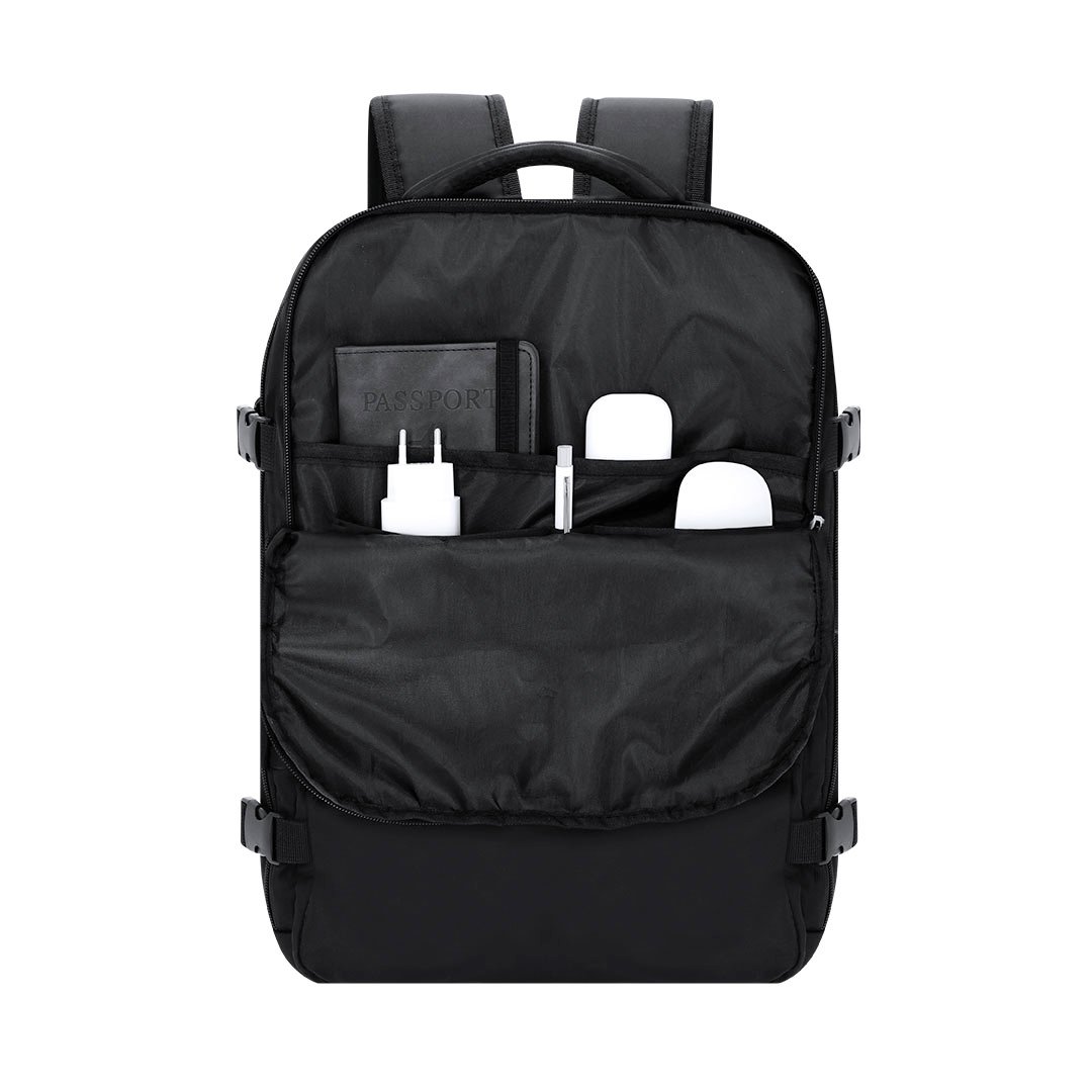 Mochila al vacío con elegante diseño en suave nylon incluye bomba de vacío de 35W. Cuenta con un compartimento principal extensible, en él se encuentra un bolsillo interior de vacío. El tercer compartimento dispone de un bolsillo con múltiples opciones de almacenamiento. Además de dos bolsillos de pequeño tamaño en la parte frontal. Laterales con hebillas para ajuste. Espalda y cintas acolchadas, y cinta para trolley. Asa de agarre y en la parte superior.