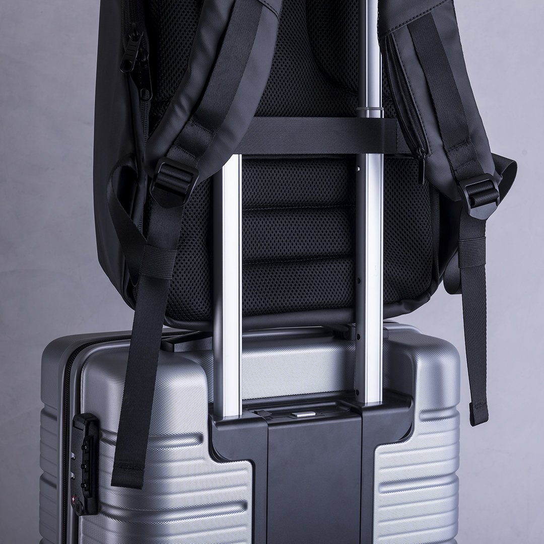 Mochila de negocios antirrobo repelente al agua en poliéster de alta calidad, resistente a cortes y a roces. Con candado de seguridad por contraseña, cinta reflectante trasera y accesorio para acople en trolley. Bolsillo antirrobo en la espalda para guardar objetos de valor. Compartimento interior con salida USB para conexión de powerbank -no incluido-, con cable micro USB de 1 metro de largo para total comodidad en la carga de cualquier dispositivo móvil. Salida para auriculares y bolsillo en cinta derecha con fácil acceso para tarjeta de transporte y otros documents de uso frecuente. Apertura total 180º para fácil acceso al interior de la mochila. Dos compartimento interiores independientes y acolchados para ordenador portátil de hasta 15 pulgadas y para tablets de hasta 10 pulgadas. Con multitud de bolsillos interiores y exteriores. Cintas de hombros y espalda con acolchado ergonómico.