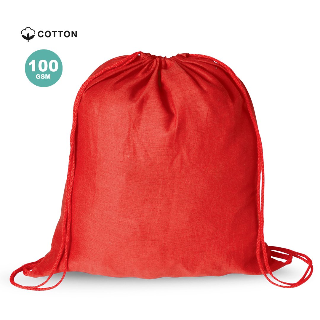 Mochila de cuerdas en tejido 100% algodón de suave acabado de alegres colores. Con cuerdas autocierre a juego.