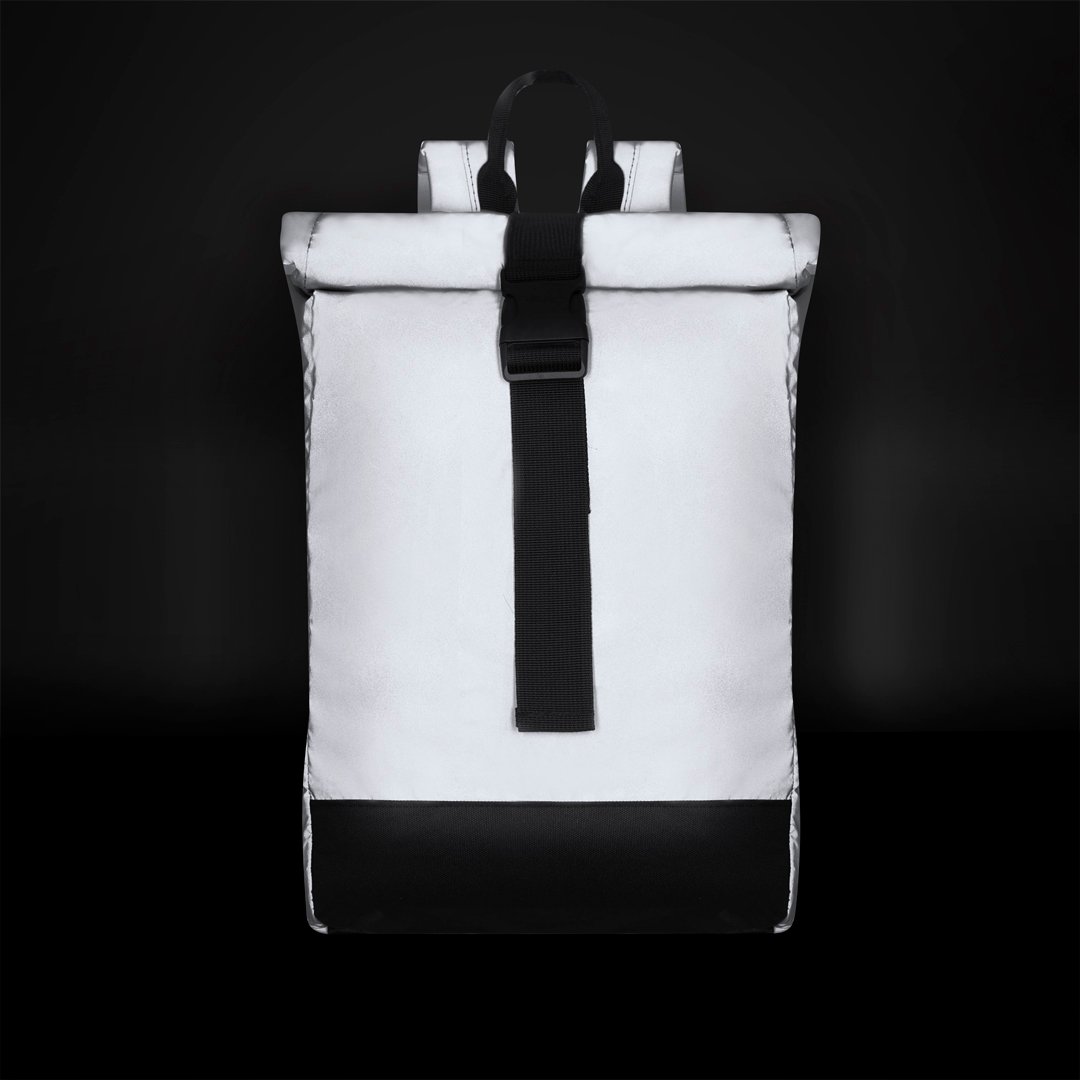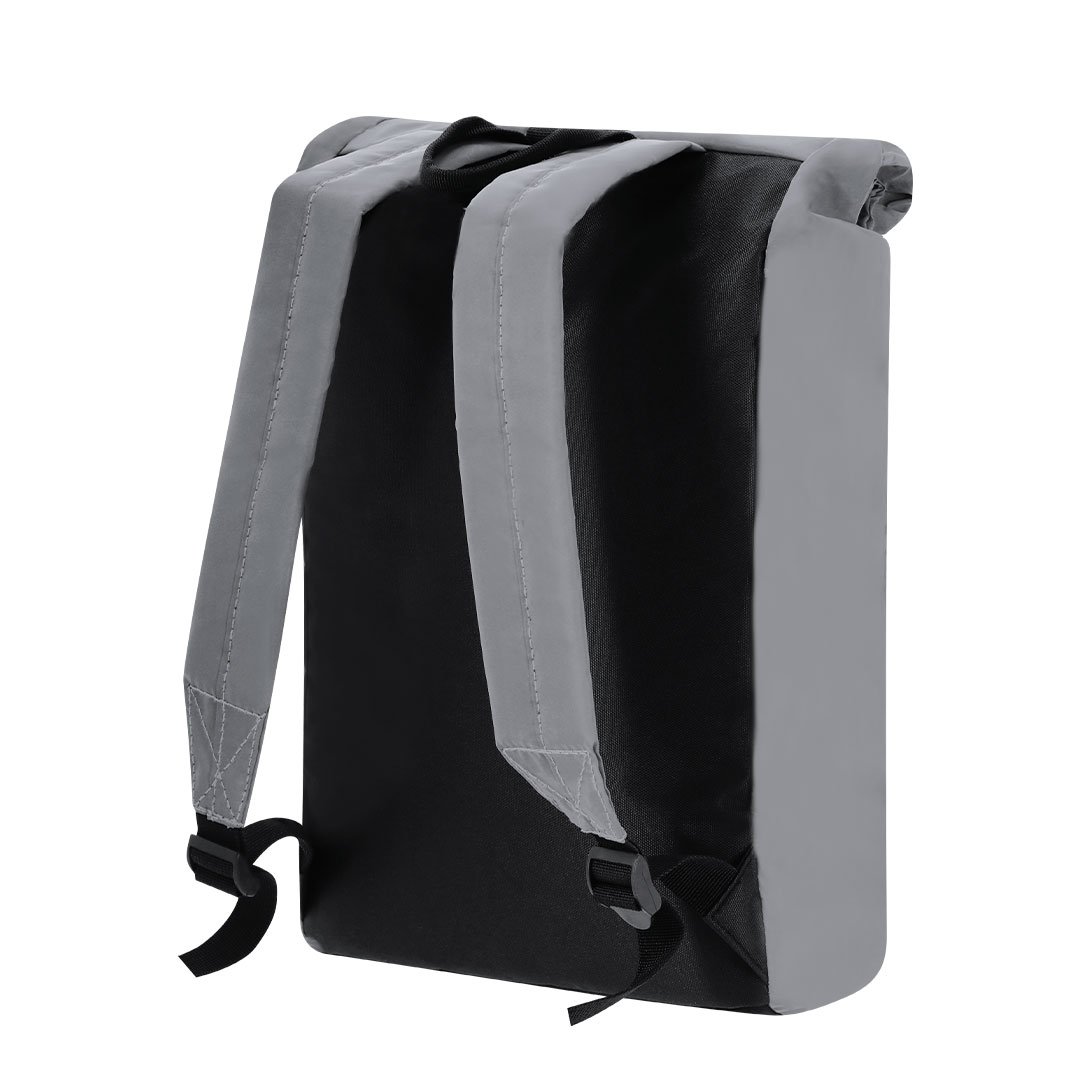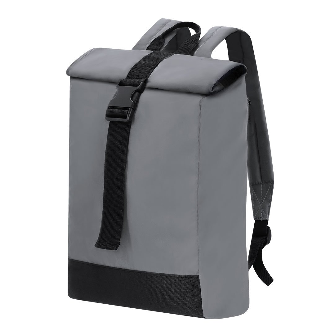 Mochila confeccionada en sueve y resistente poliéster 190T  reflectante . Con sistema de cierre enrollable y hebilla ajustable. Interior de gran capacidad con compartimento interior acolchado para portátil de hasta 15 pulgadas. Cintas de hombros reflectantes y espalda. Además, cuenta con un bolsillo en el lateral trasero izquierdo con cierre de cremallera. Perfecta para viajes o para el día a día gracias a su gran visibilidad, se adapta a todo estilo de vida haciendo que ir en bicicleta o andando sea más seguro.