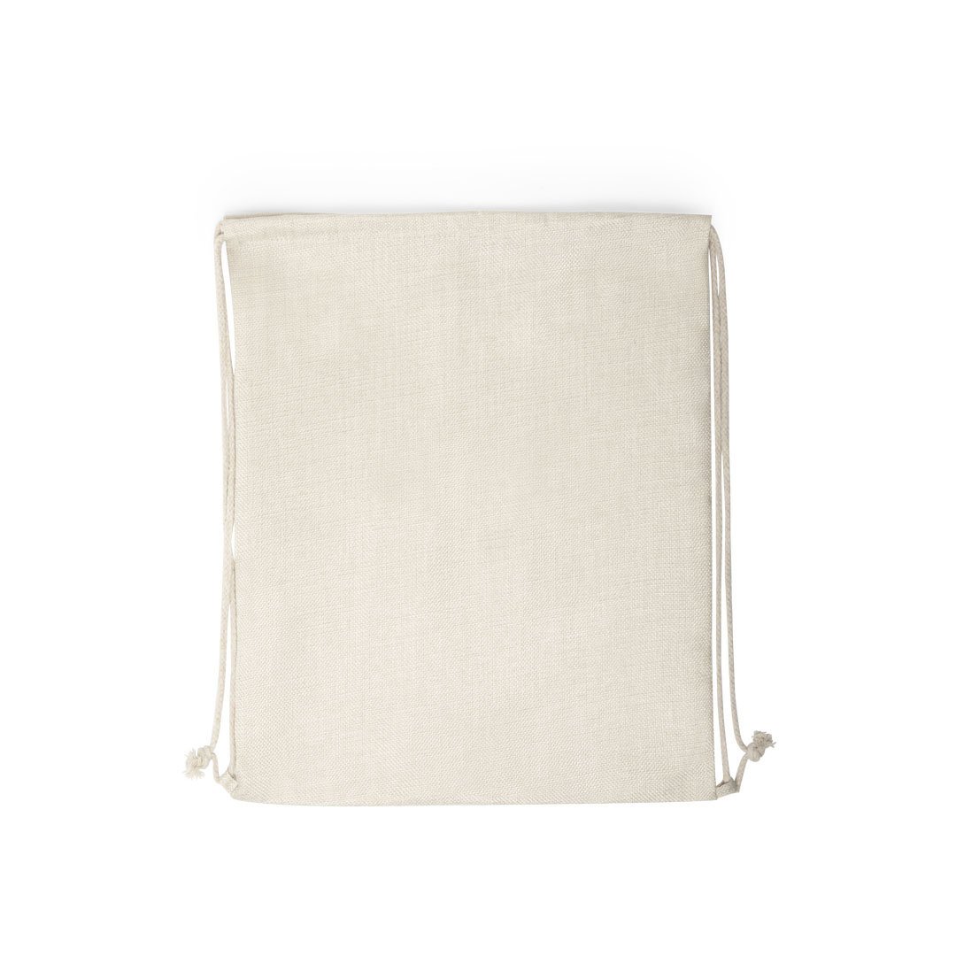 Mochila de cuerdas de inspiración nature, en resistente poliéster de suave tacto, especialmente elaborado para impresión en sublimación. Con cuerdas autocierre en color natural y esquinas reforzadas.