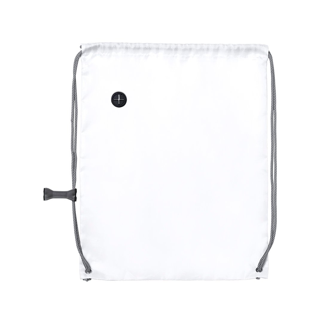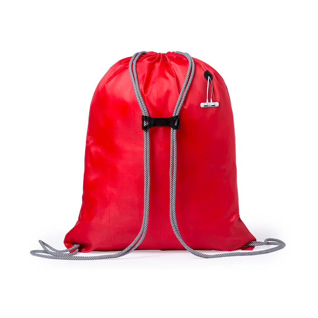 Mochila de cuerdas en suave poliéster 190T de vivos colores. Con salida de auriculares, cuerdas autocierre extra gruesas en color gris con accesorio de ajuste y esquinas con argollas metálicas y refuerzo.