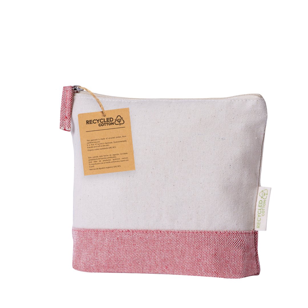 Neceser elaborado en algodón reciclado. Compartimento principal de cierre de cremallera y tirador de color a juego con la base. Disponible en variada gama de vivos colores. Con logotipo algodón reciclado en etiqueta.