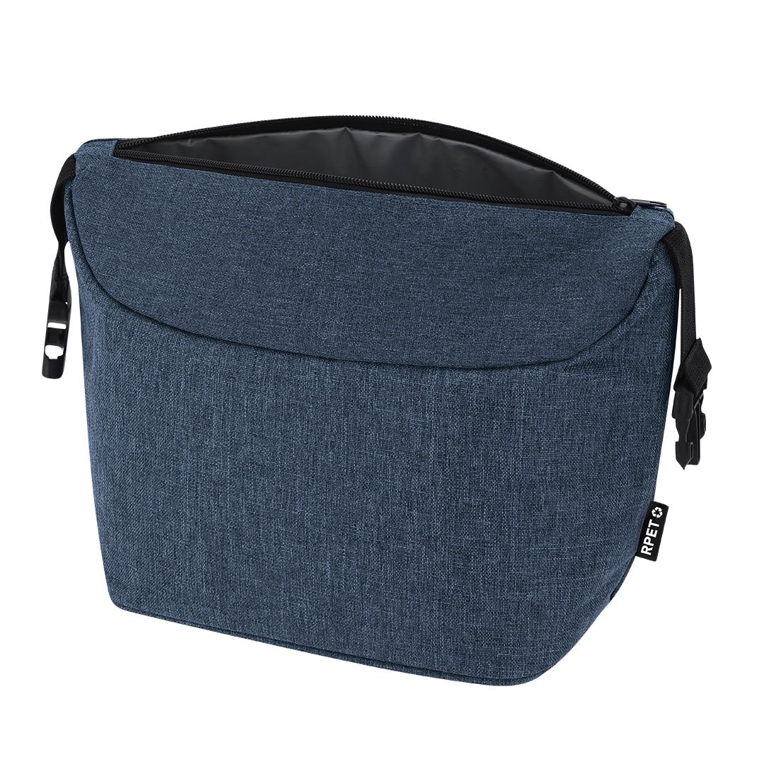 Nevera confeccionada en 600D RPET. Diseño original y hebilla en ambos extremos, que facilita el transporte y aporta mayor funcionalidad en su uso. Cuenta con un compartimento interior principal térmico. Incluye etiqueta RPET.El material RPET se elabora a partir de plástico reciclado, para así fomentar la reutilización de residuos plásticos y ayudar a la sostenibilidad del planeta.