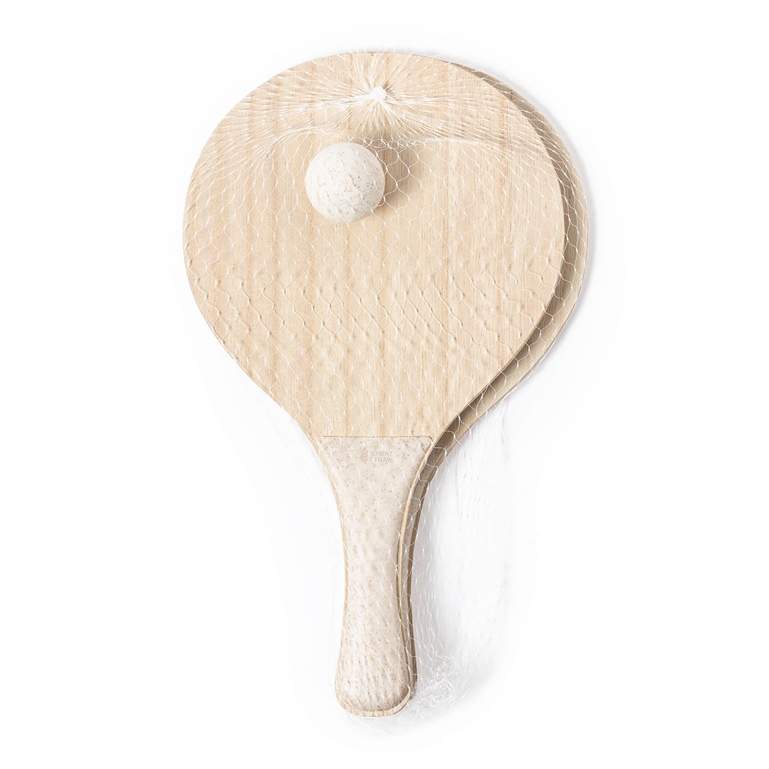 Par de palas de playa especiales para la sublimación. Fabricadas en madera, con mango reforzado en caña de trigo. Zona especial para la sublimación en la parte plana de la pala con posibilidad de diseños a todo color. Logotipo en el mango. Presentadas en bolsa de rejilla, con pelota de caña de trigo.La caña de trigo fomenta la utilización de materias primas naturales, reduciendo así las emisiones contaminantes.