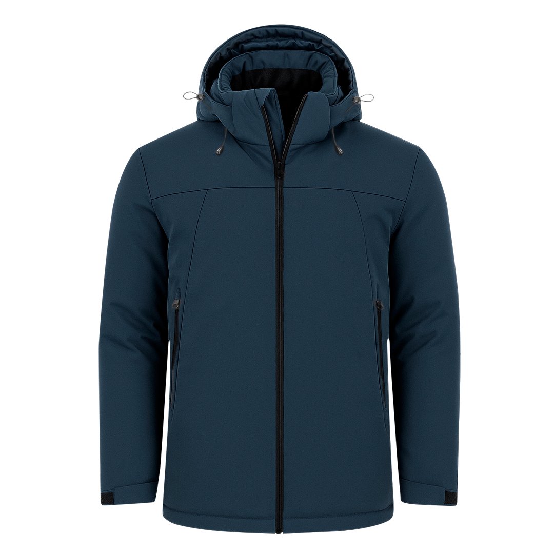 Parka unisex acolchada con capucha fija ajustable. Con cremallera frontal en color negro con protector de barbilla, que aporta mayor comodidad y protección. Dos bolsillos laterales con cierre de cremallera en color negro. Puños ajustables con velcro.