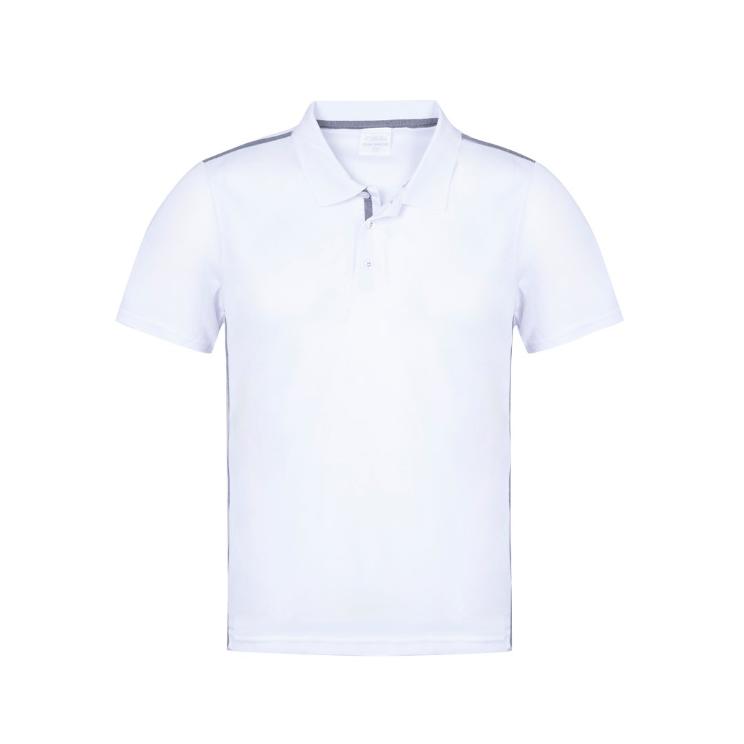 Polo técnico para adulto en poliéster transpirable de 180g/m2. De elegante diseño bicolor, en color blanco con contraste de detalles en gris. Disponible en tallas S, M, L, XL, XXL. Color blanco especialmente fabricado para marcaje en sublimación.