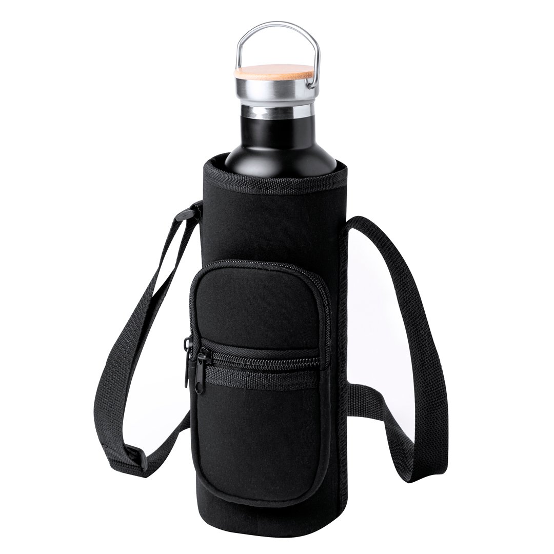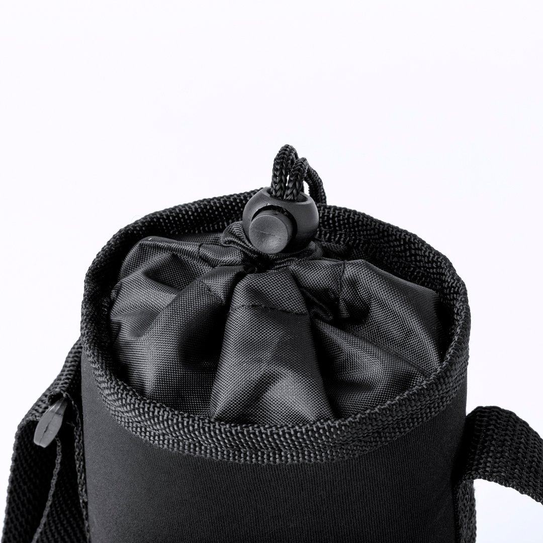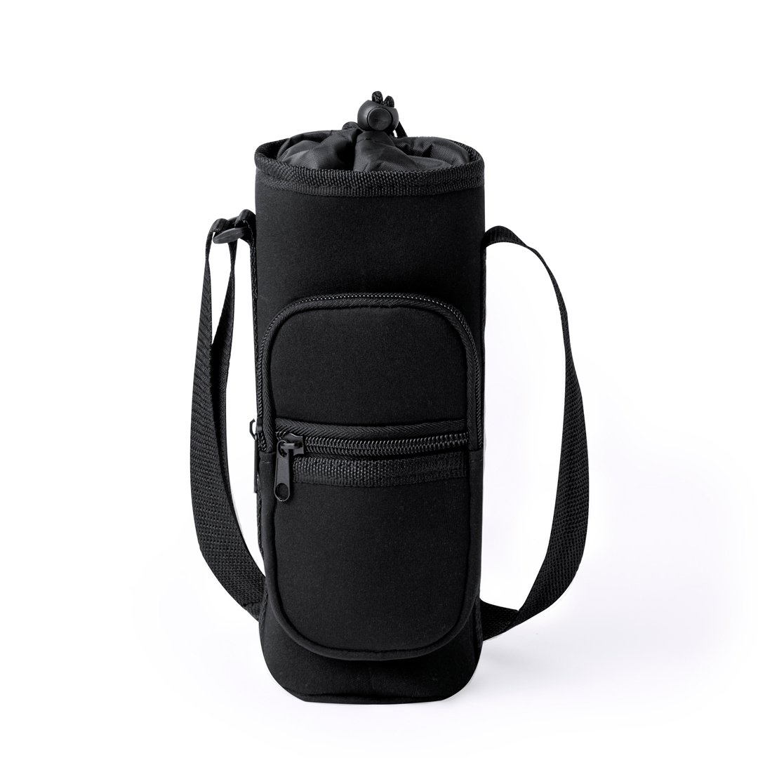 Portabidones de hasta 1,5L, fabricada en soft shell. Con cierre de cordón y se lleva cómodamente con la cinta para el hombro ajustable. Con bolsillos frontales de cremallera. Presentado individualmente en bolsa reciclada.