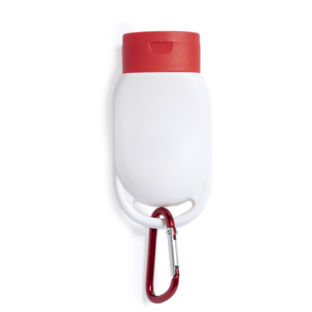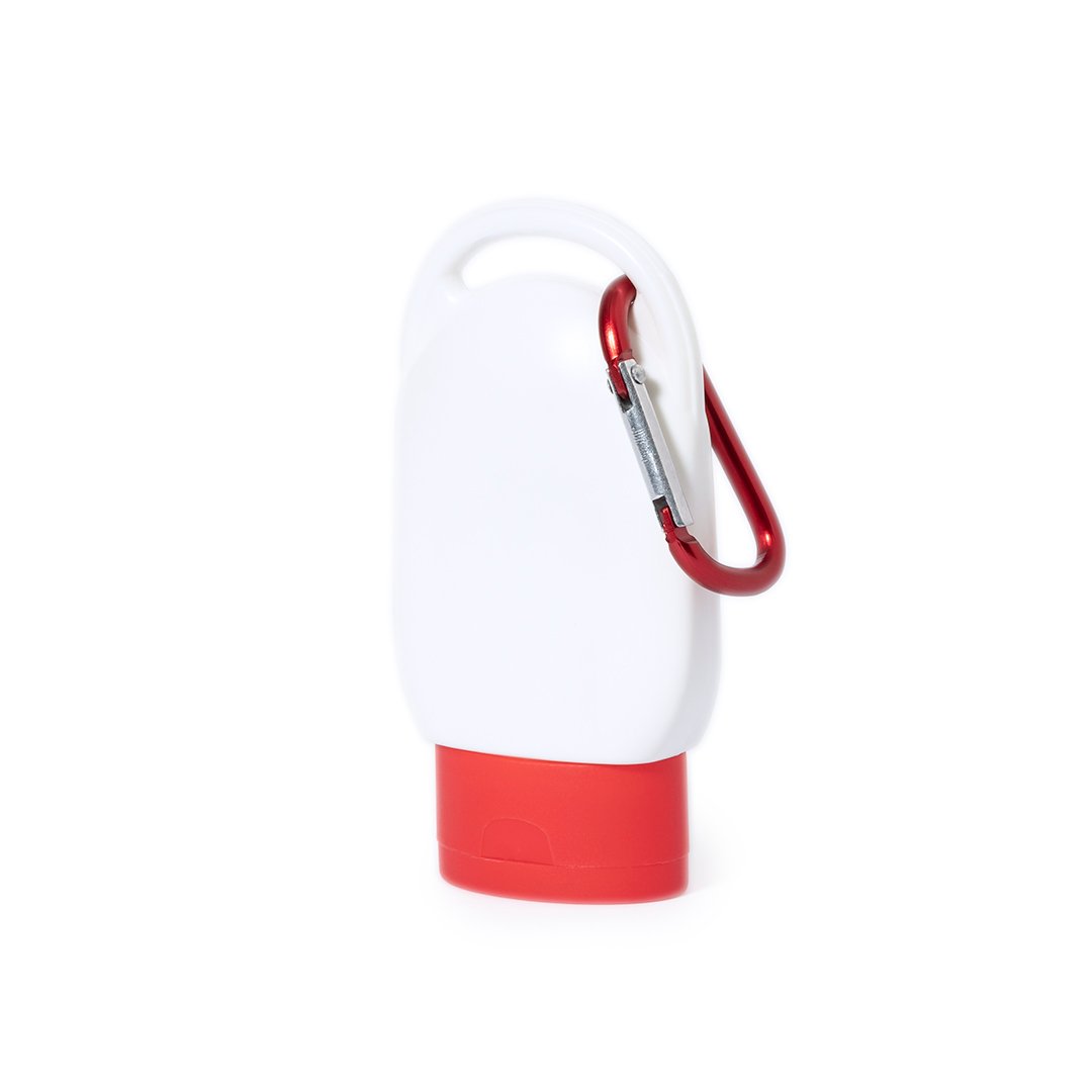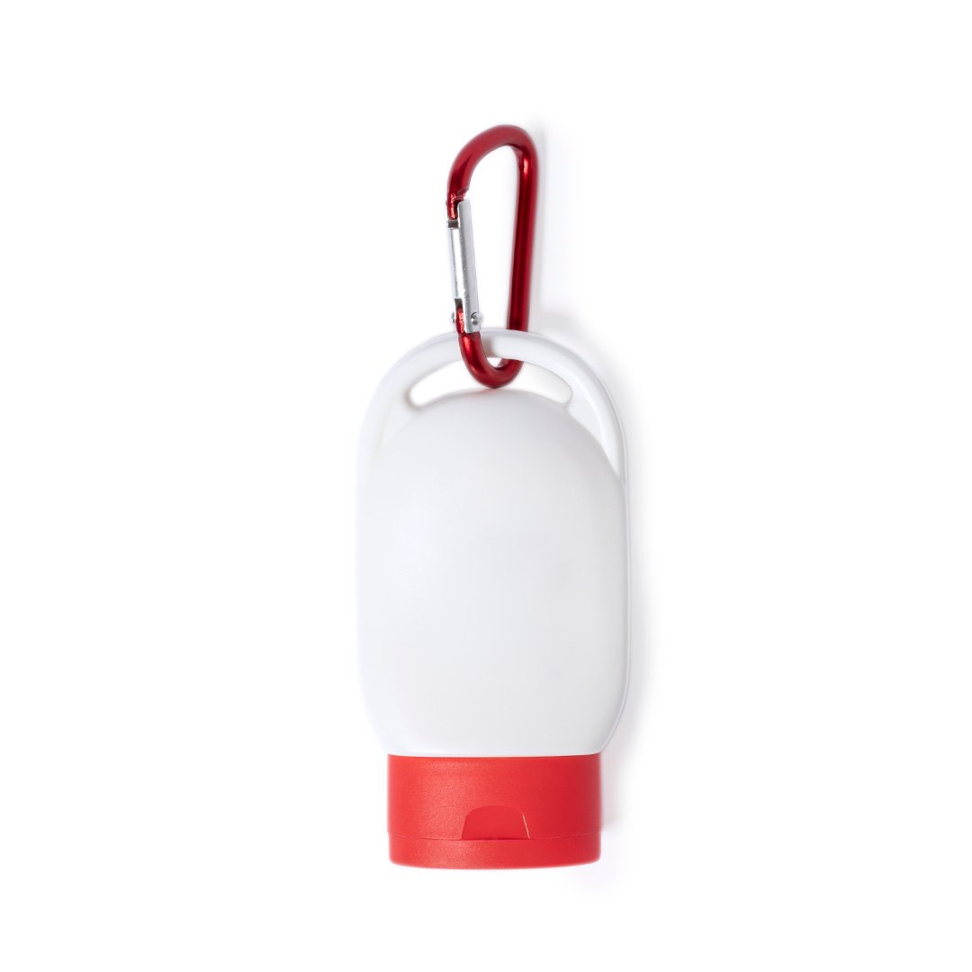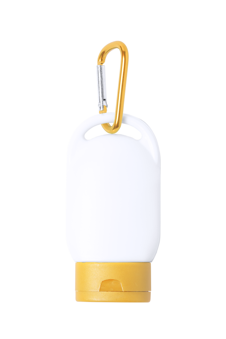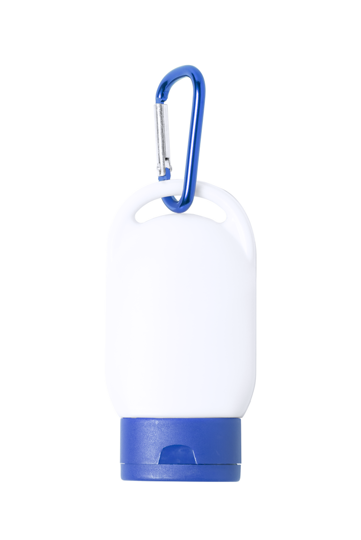 Crema de protección solar factor 30. Presentada en práctico bote de 30ml y acabado frosted. Disponible en variada gama de colores, con mosquetón de transporte a juego.