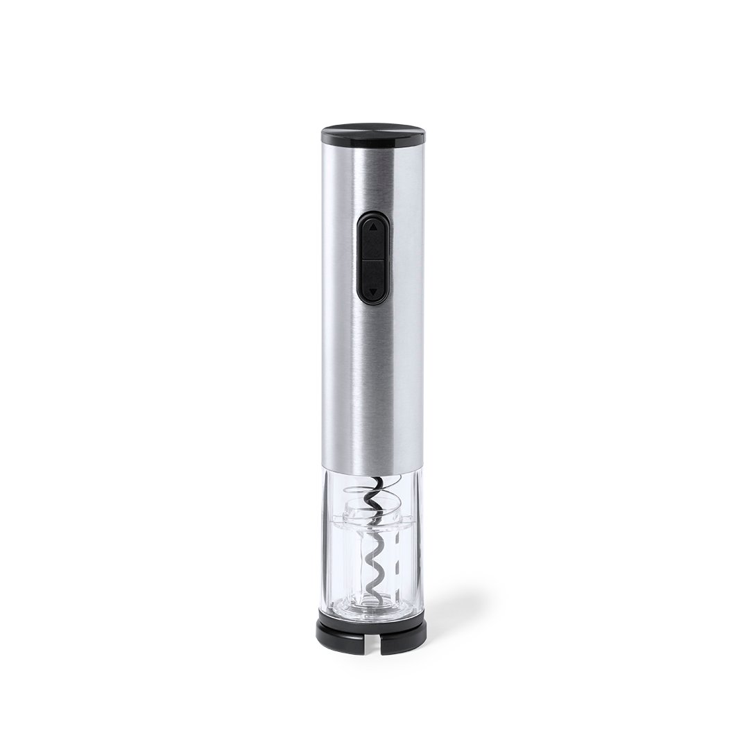 Sacacorchos eléctrico fabricado en acero inox y resistente ABS, con cortacápsulas incluido. Presentado en caja individual de diseño, con manual de instrucciones en español e inglés. Alimentación a pilas (4xAA no incluidas).