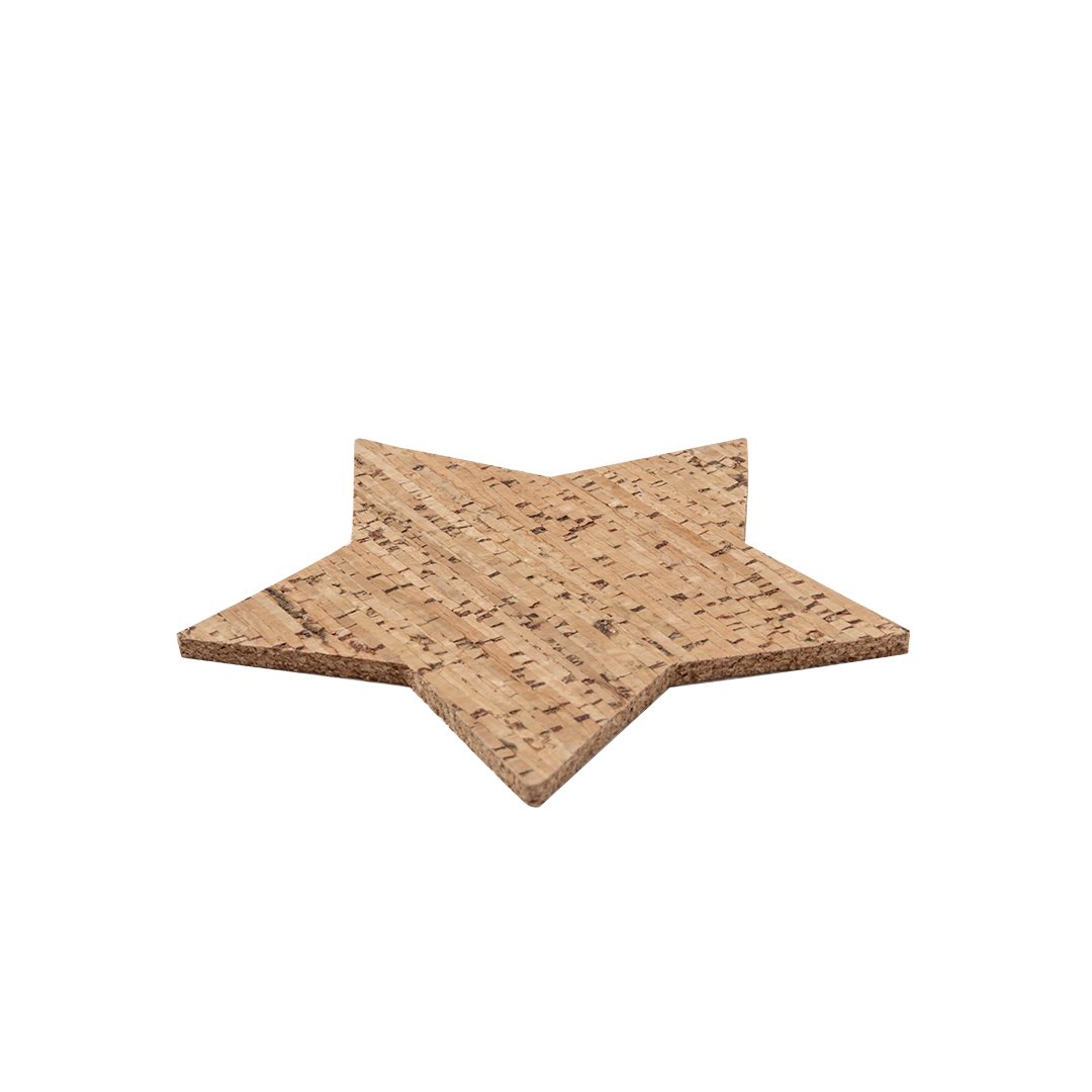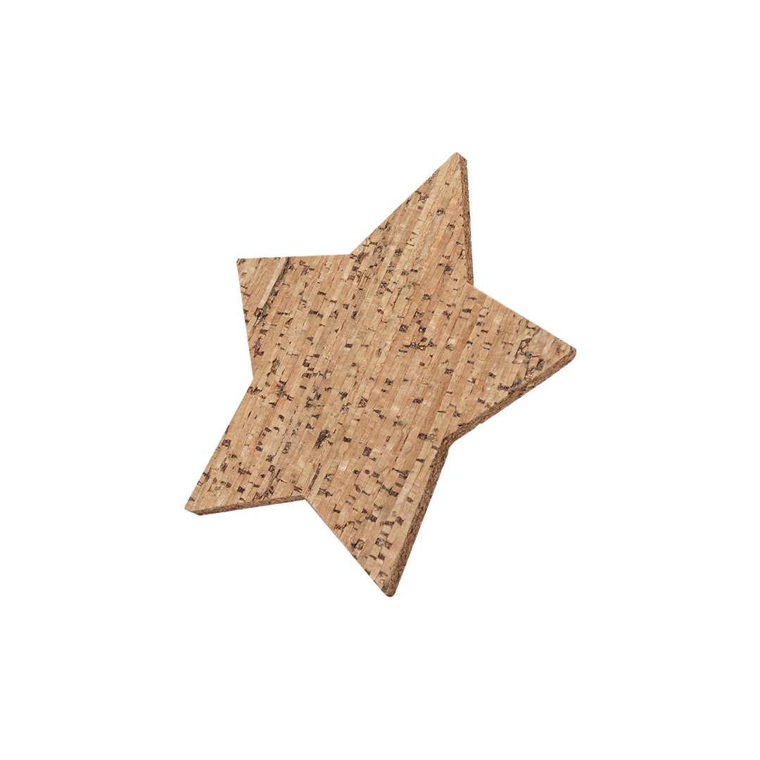 Set de 4 posavasos con forma de estrella fabricados en corcho natural. Set presentado en caja de diseño en cartón kraft con diseño de estrella troquelado.Elaborado con elementos vegetales para así fomentar la utilización de materias primas naturales y reducir las emisiones contaminantes. 4 Piezas. Corcho.