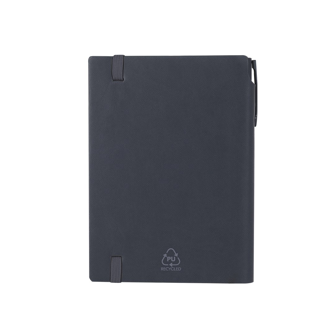 Bloc PU Reciclada. Portada Rígida. 96 Hojas. Bolígrafo Aluminio Reciclado. Acabado Caucho.